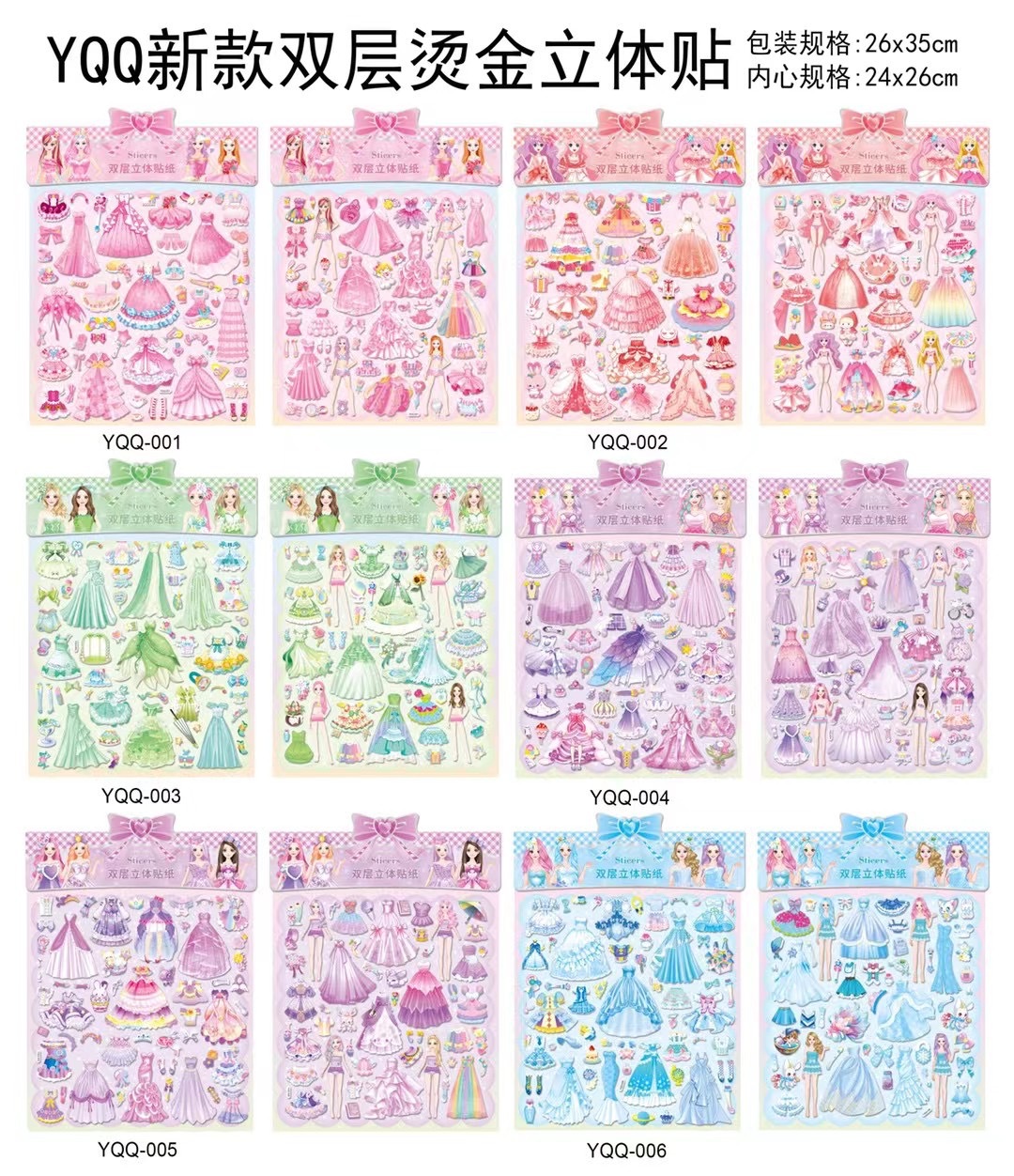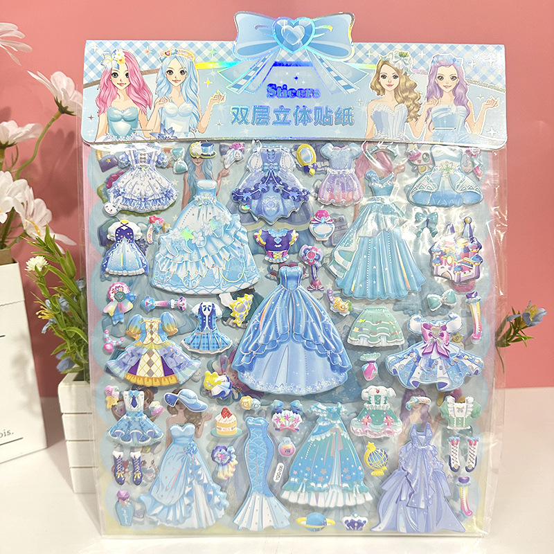 儿童公主换装贴纸女孩换衣服双层立体泡泡穿衣服卡通贴画奖励玩具