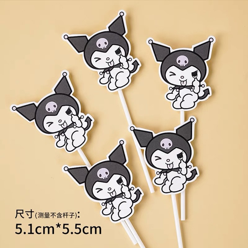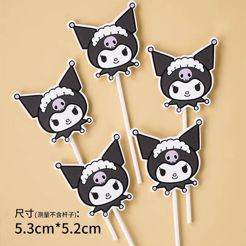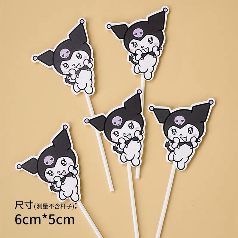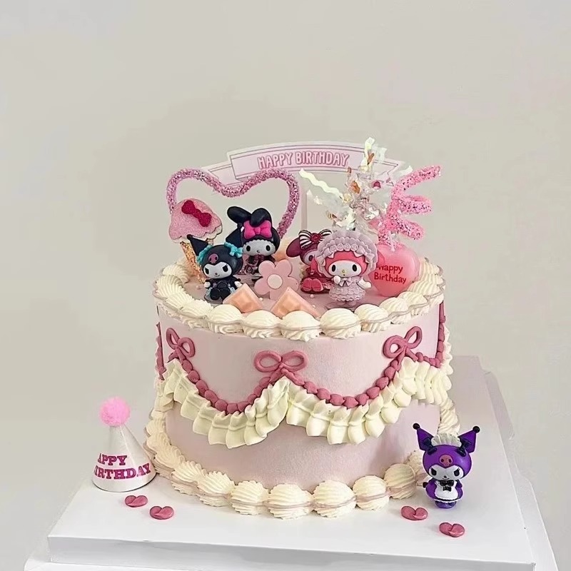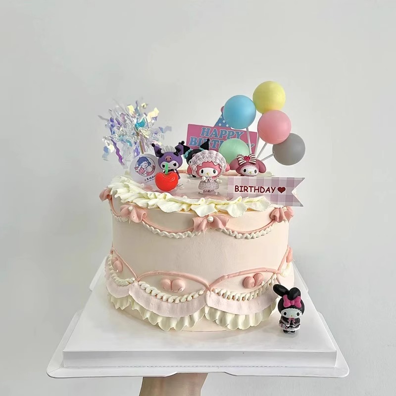 网红库洛米复古黑色系儿童生日快乐爱心气球蛋糕摆件插件