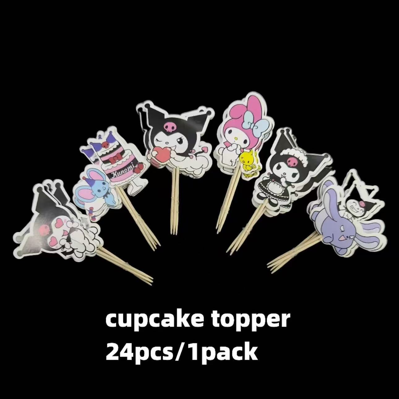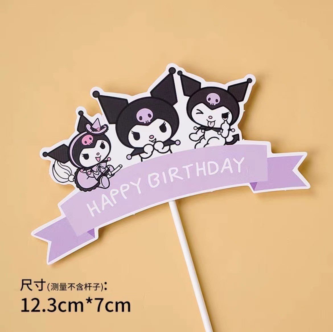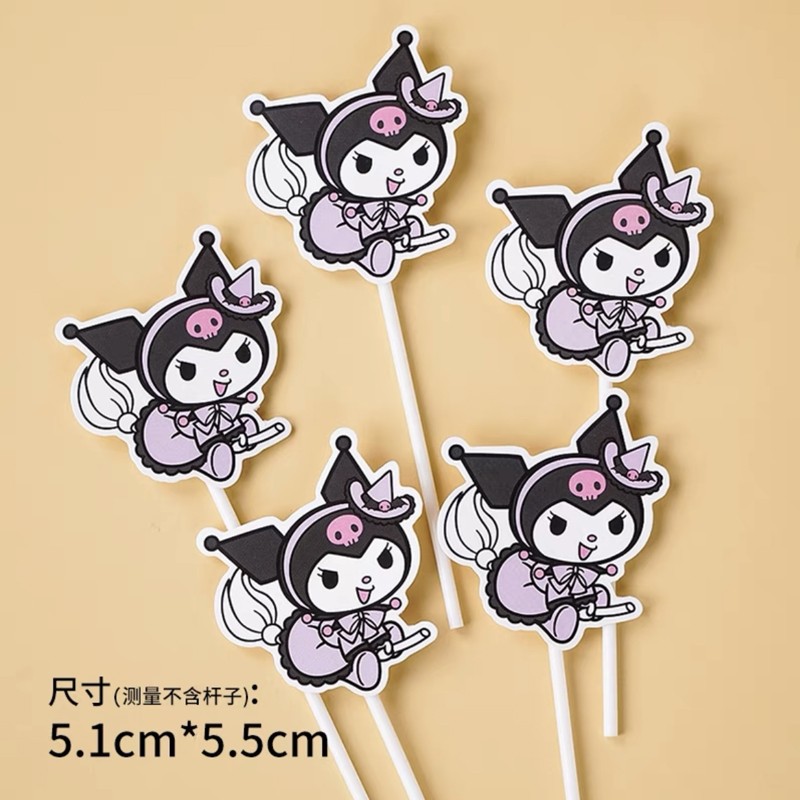 网红库洛米复古黑色系儿童生日快乐爱心气球蛋糕摆件插件