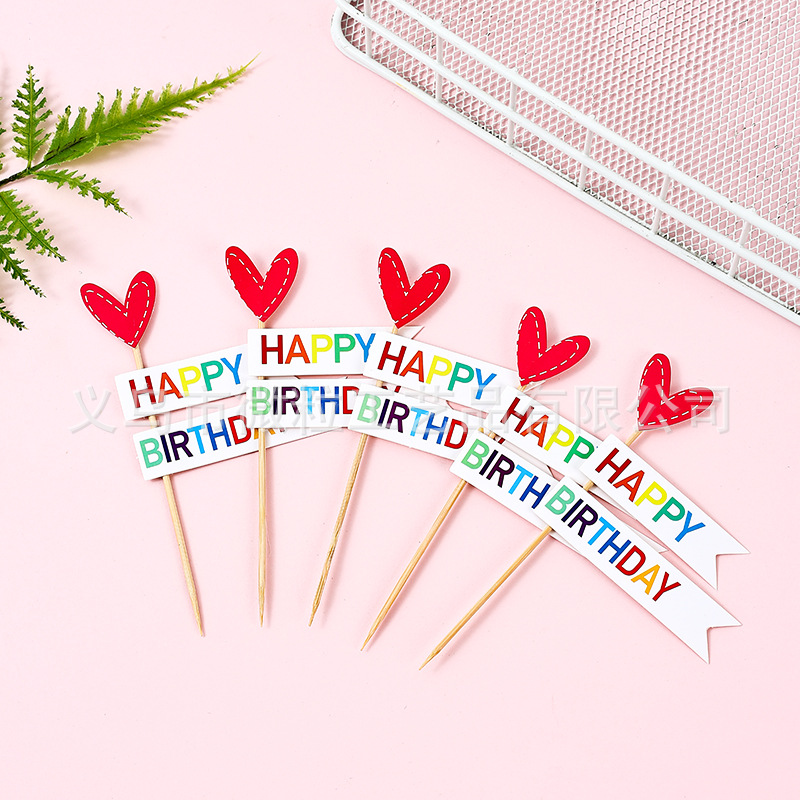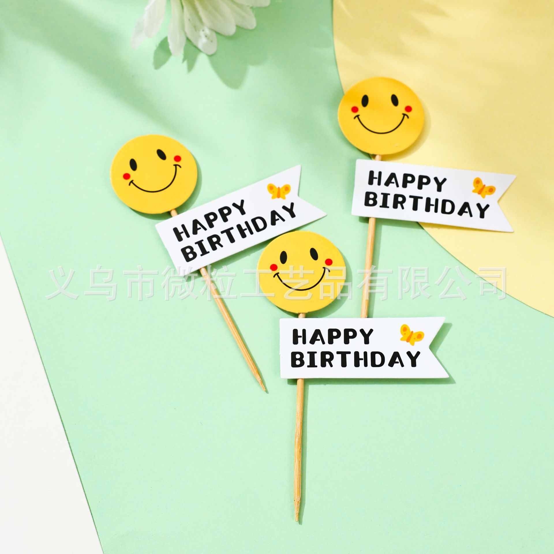 烘焙蛋糕装饰ins可爱小熊HAPPYBIRTHDAY流苏爱心雨丝笑脸插牌插件