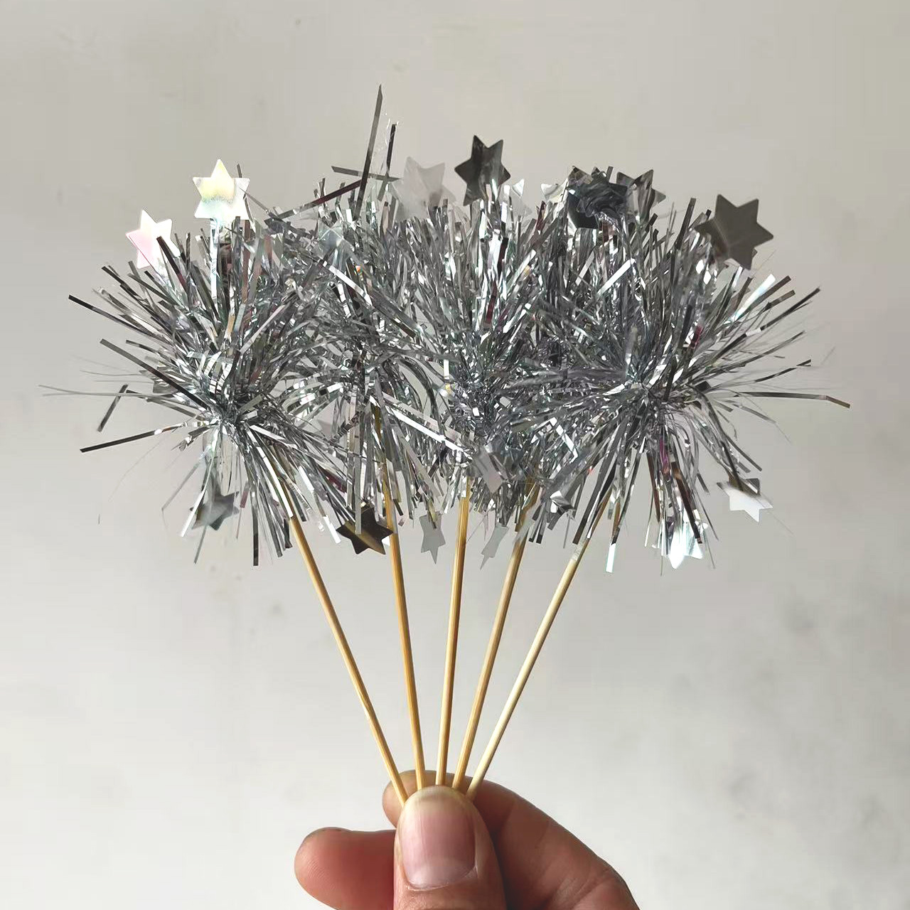 创意炫彩蛋糕装饰围边ins炫彩雨丝蛋糕插件生日装扮烘焙插牌5只装