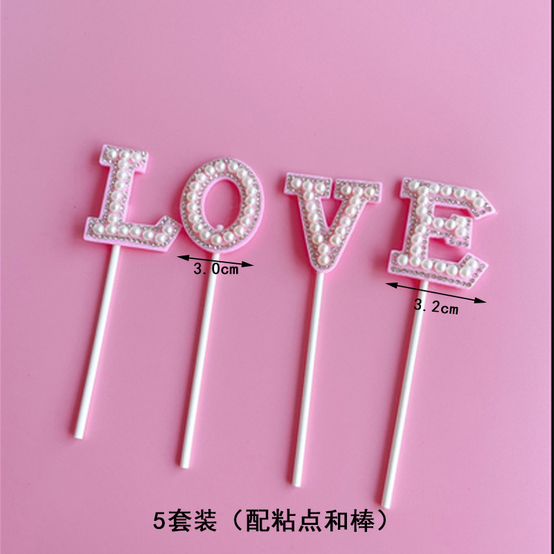 珍珠蛋糕装饰女神LOVE MOM 七夕520 DAD母亲节日快乐钻石带钻插件