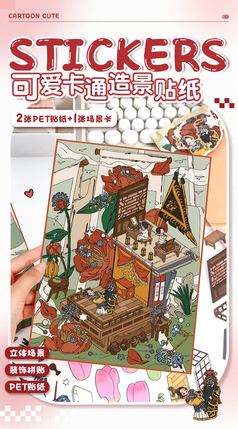 53.0艺蓝造景贴纸大号造景拼贴3D立体场景贴纸解压diy手帐贴画