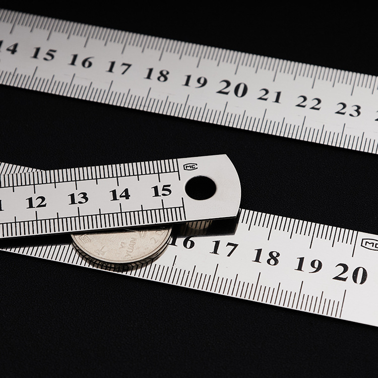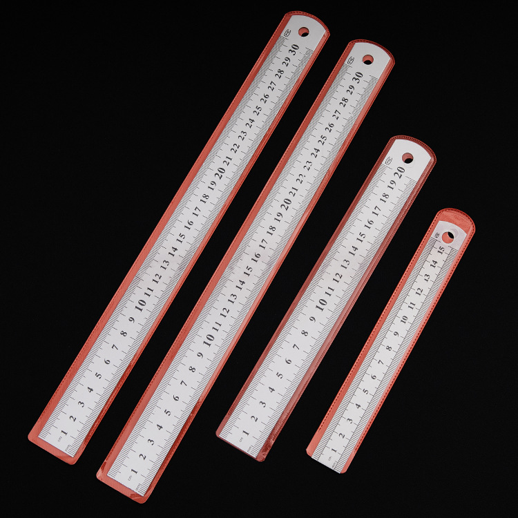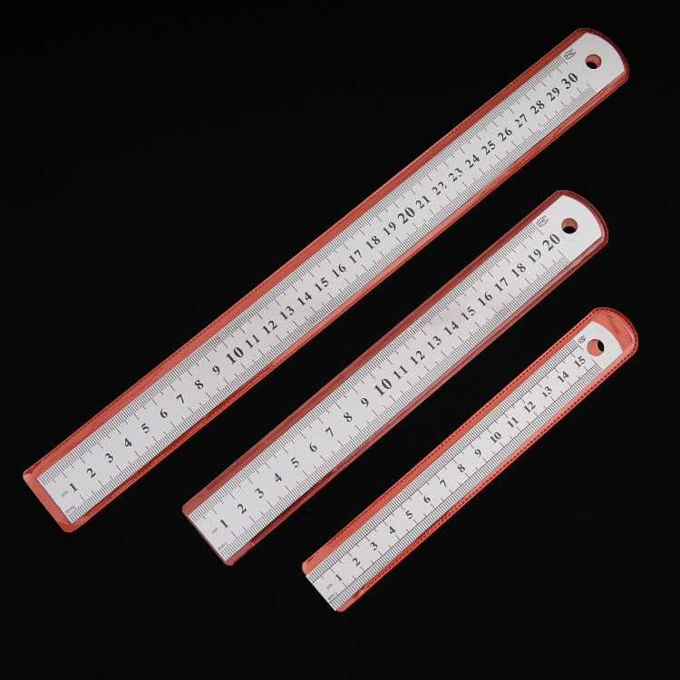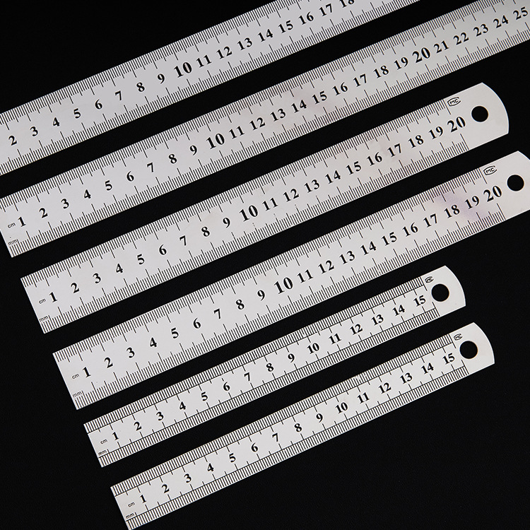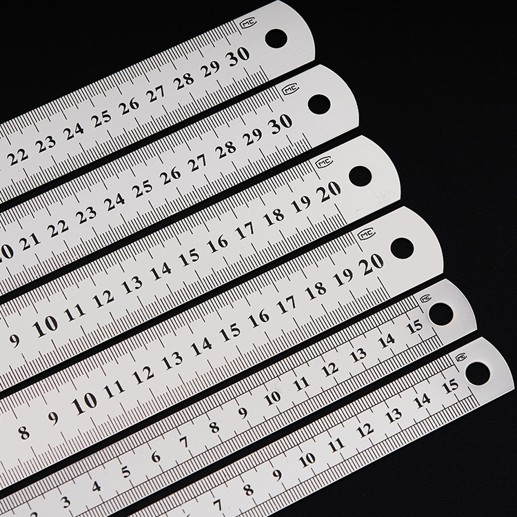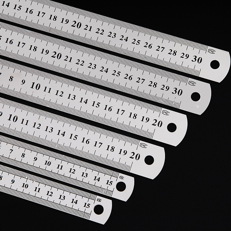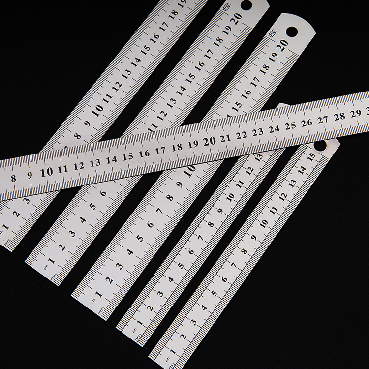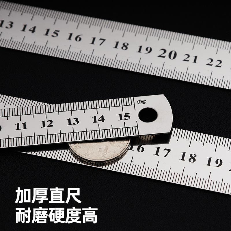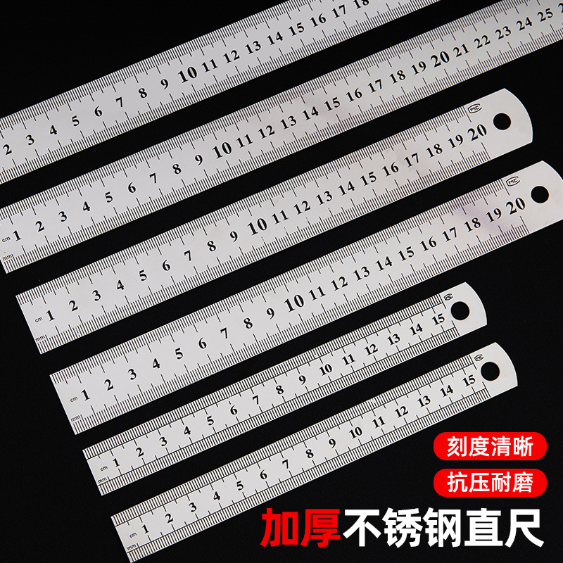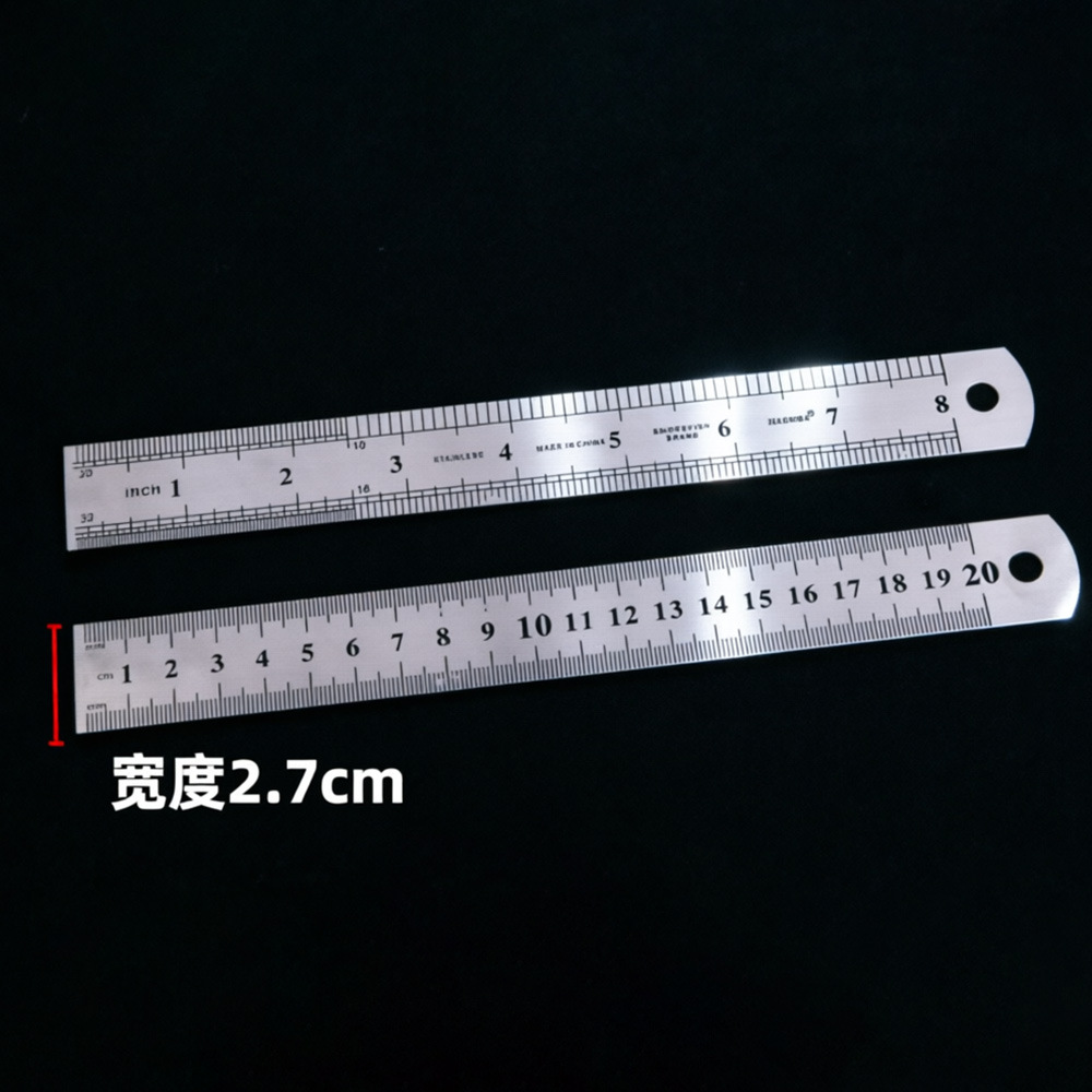不锈钢直尺办公学生文具尺子0.50.70.9加厚金属双面钢尺厂家批发