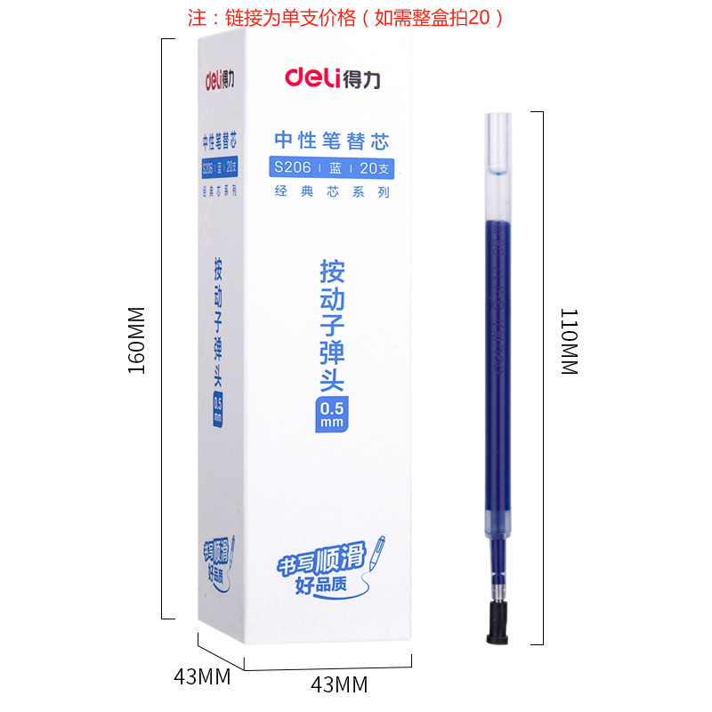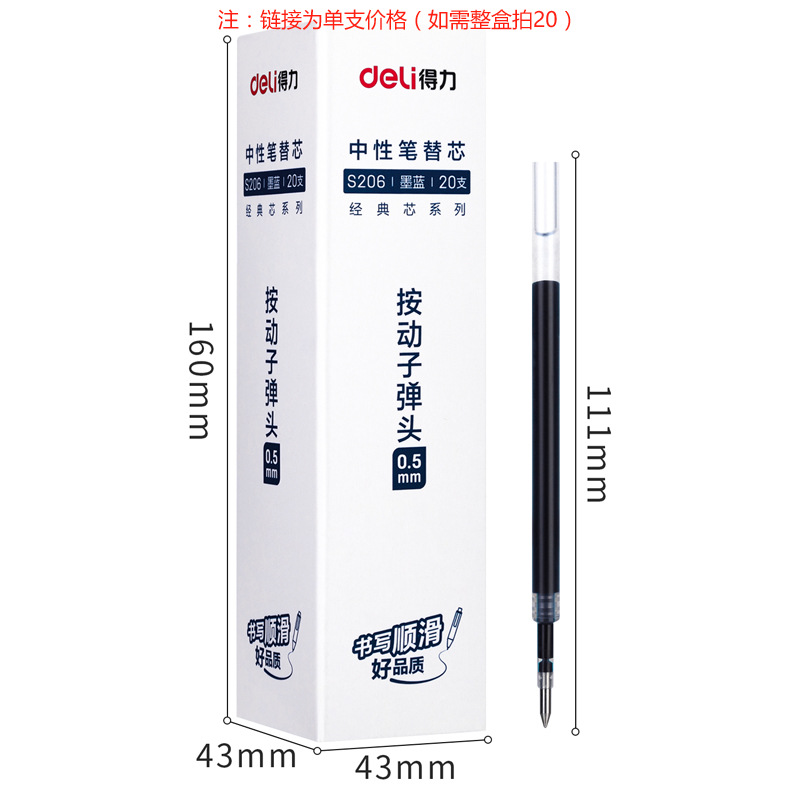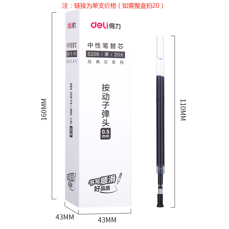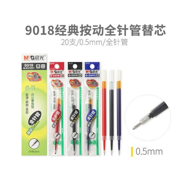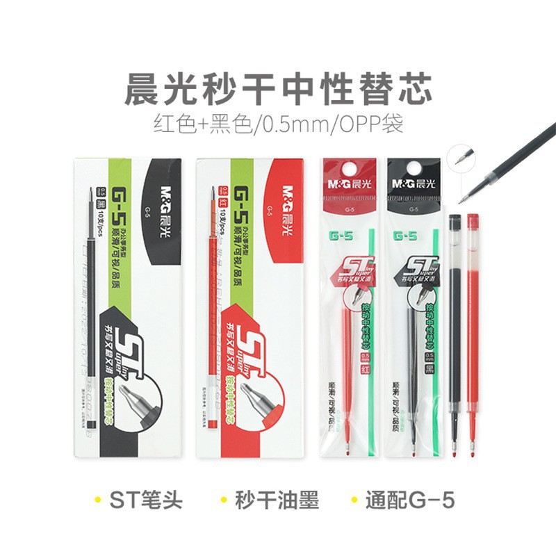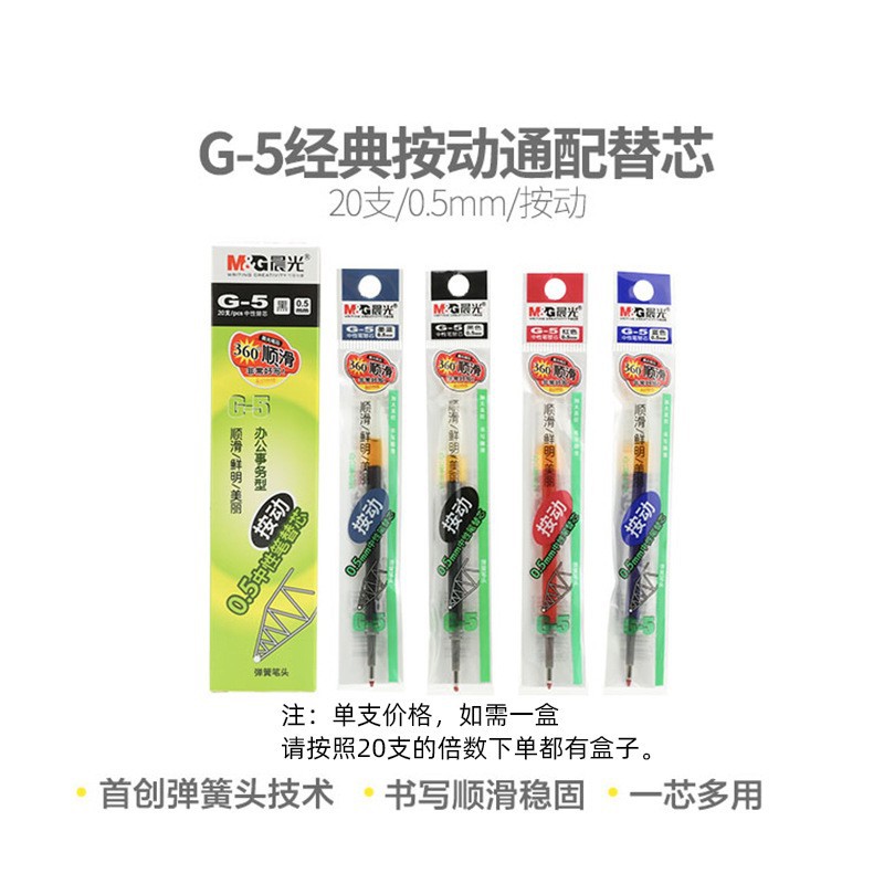 晨光G-5笔芯黑色0.5mm针管按动G5子弹头中性笔替芯签字笔水笔笔芯
