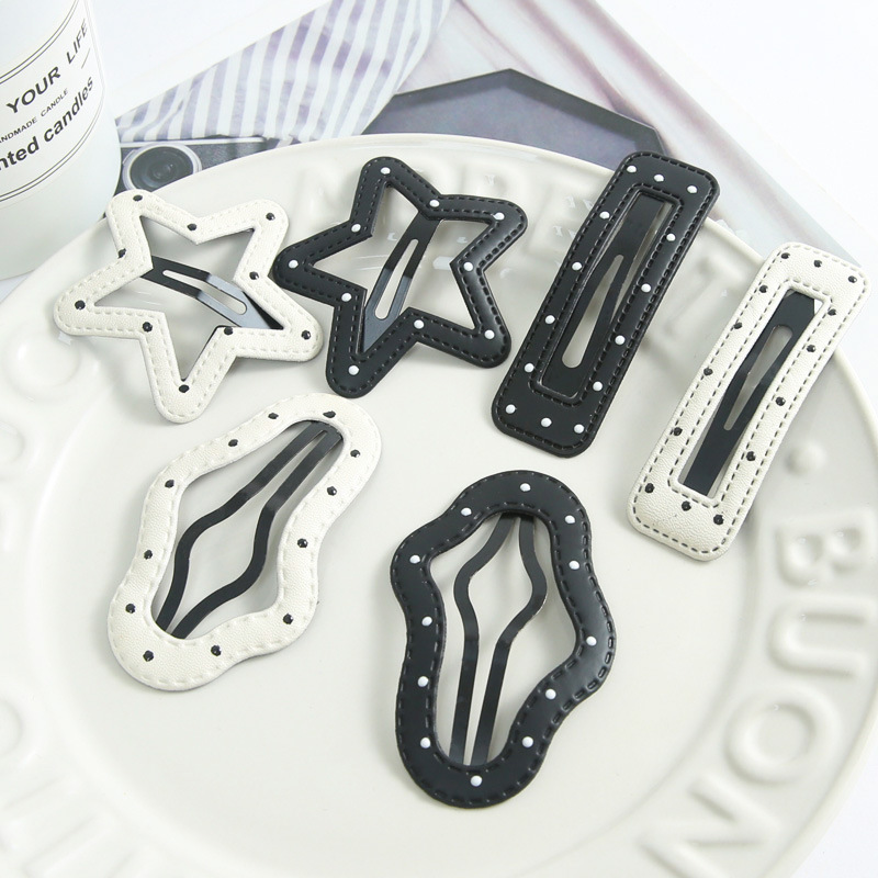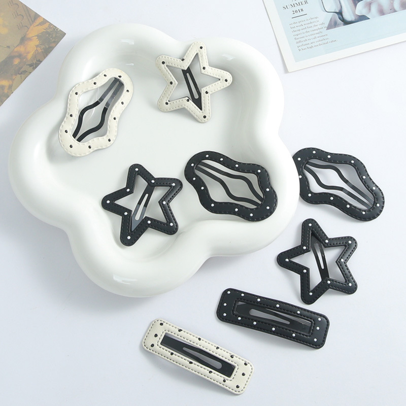韩系皮质黑白云朵波点发夹前额碎发五角星边夹简约冷淡风bb夹发卡