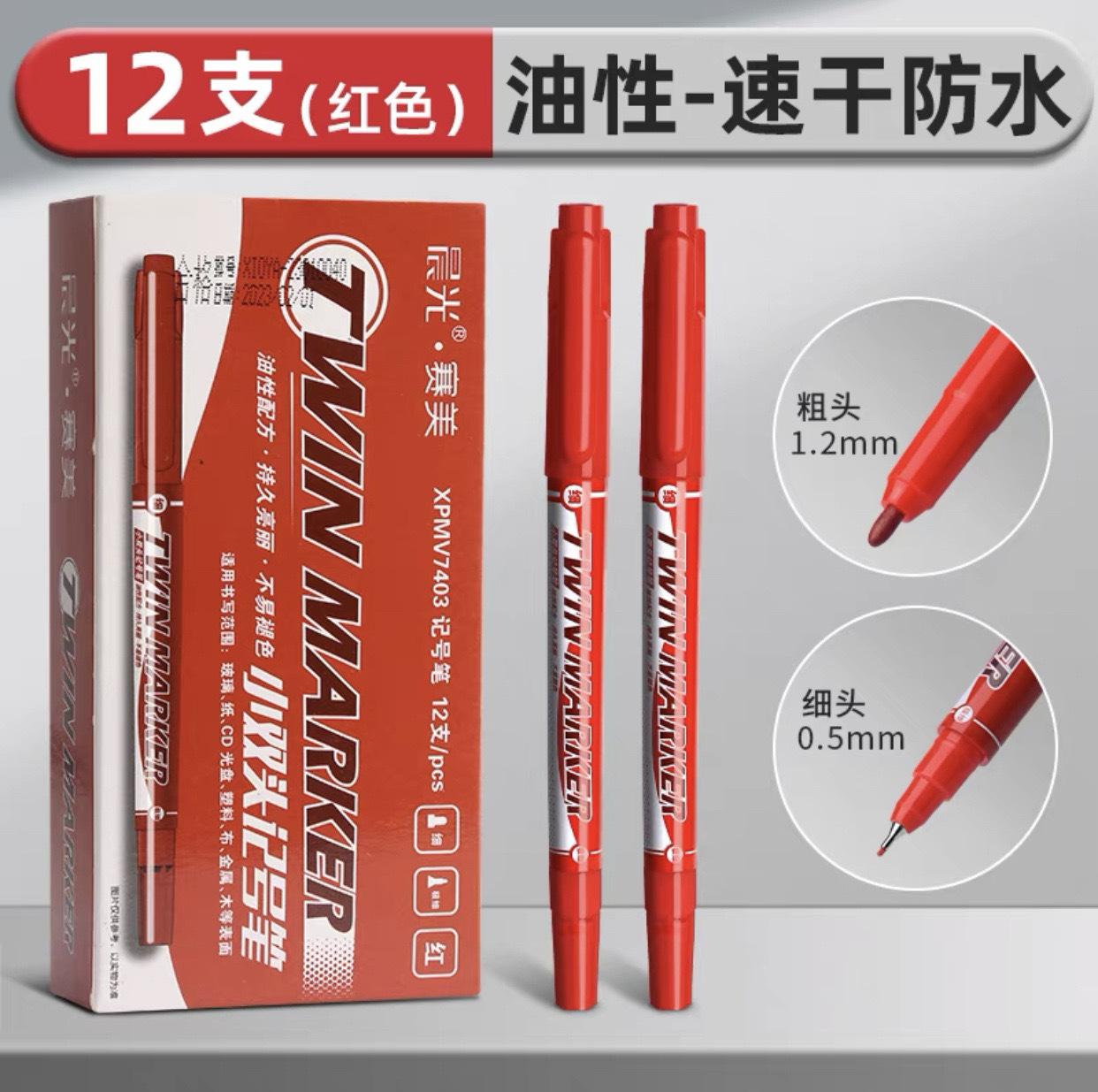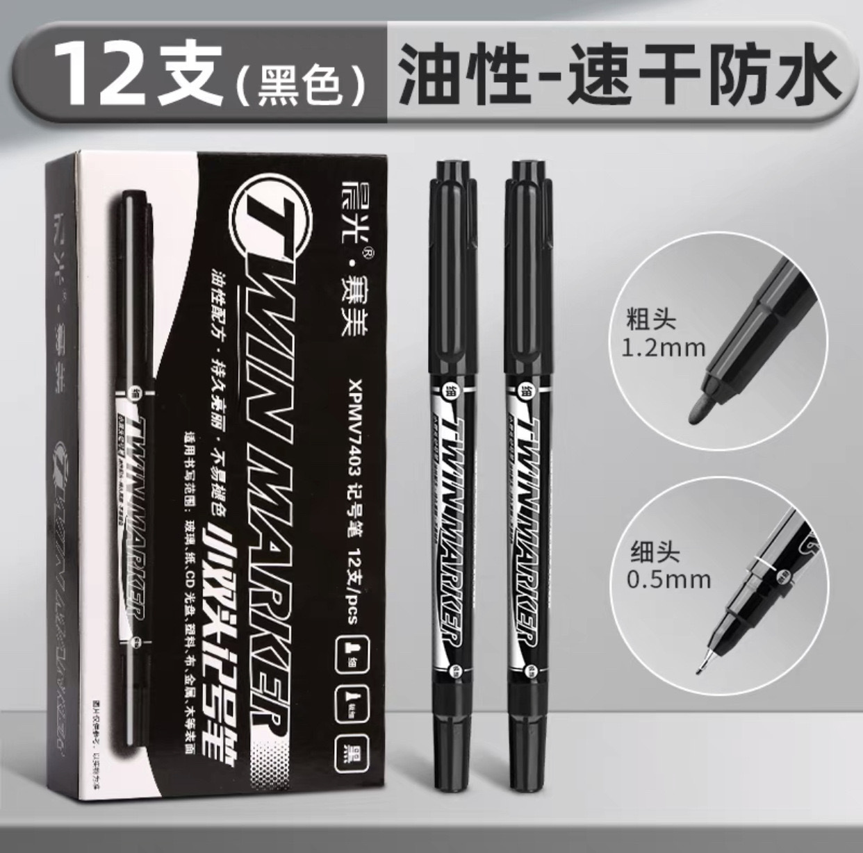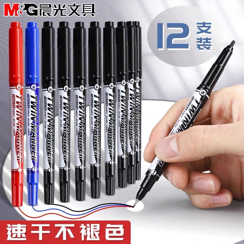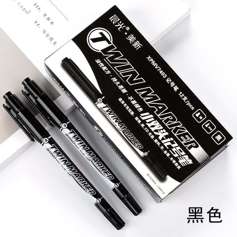晨.光小双头记号笔V7403油性美术勾线笔不掉色学生描边绘画马克笔