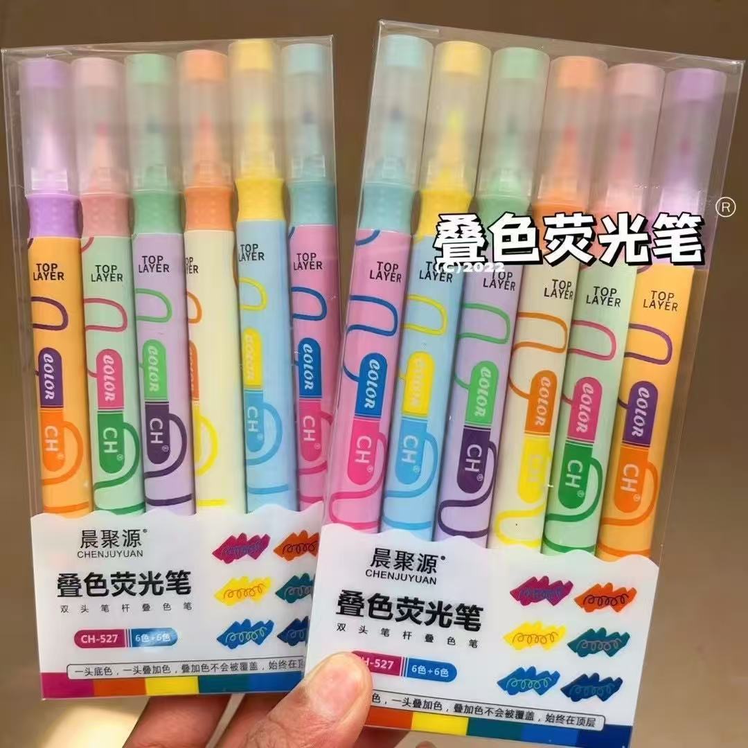 吻朵双头叠色荧光笔学生高颜值创意手账彩色记号笔护眼划重点批发