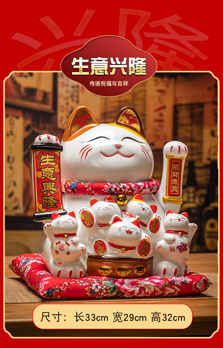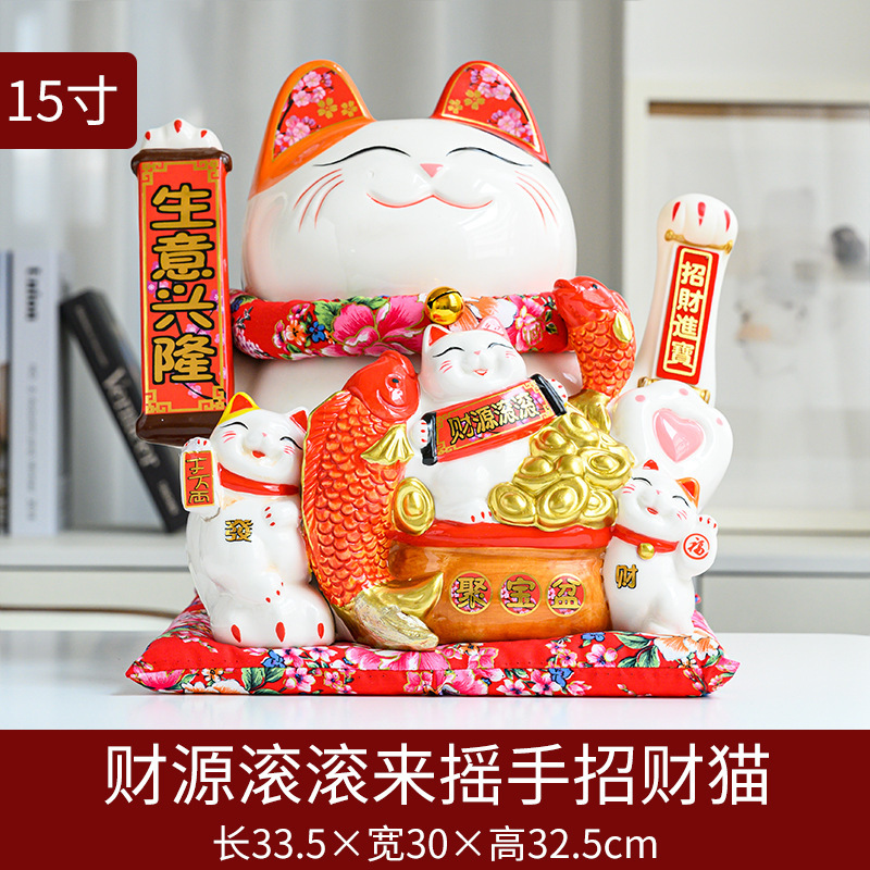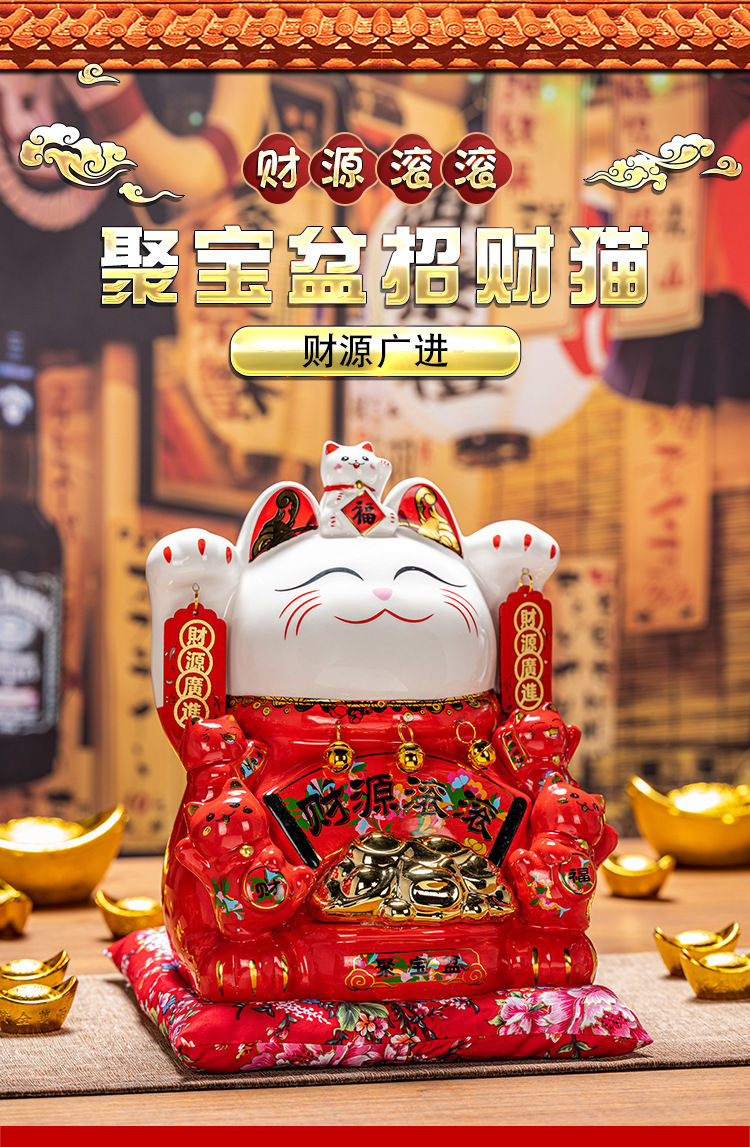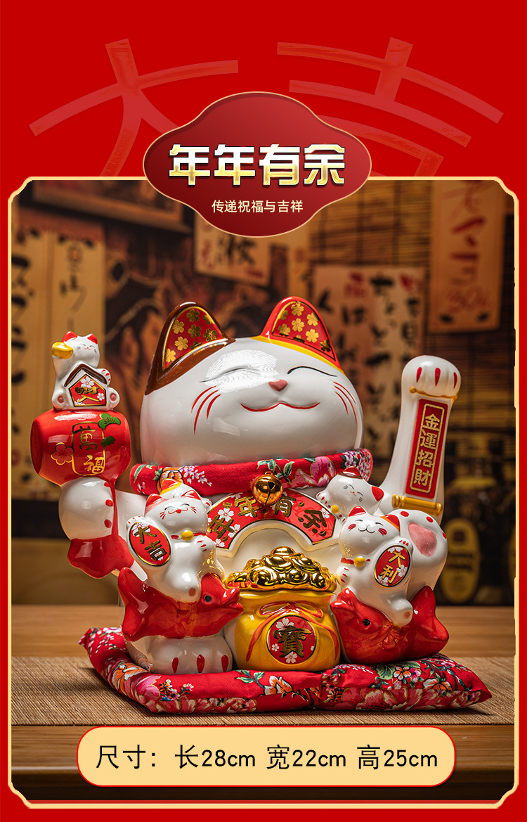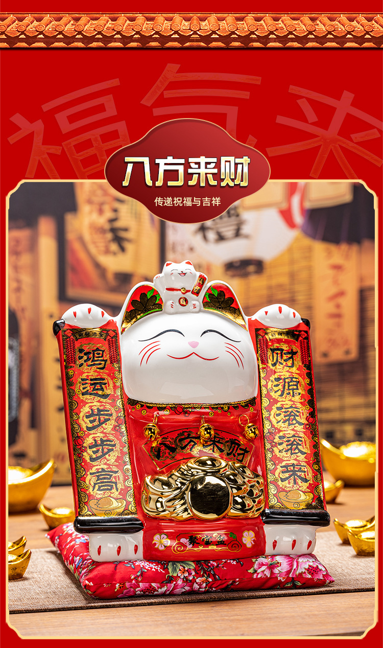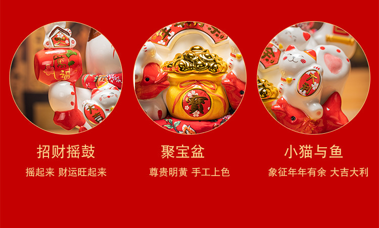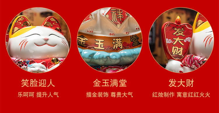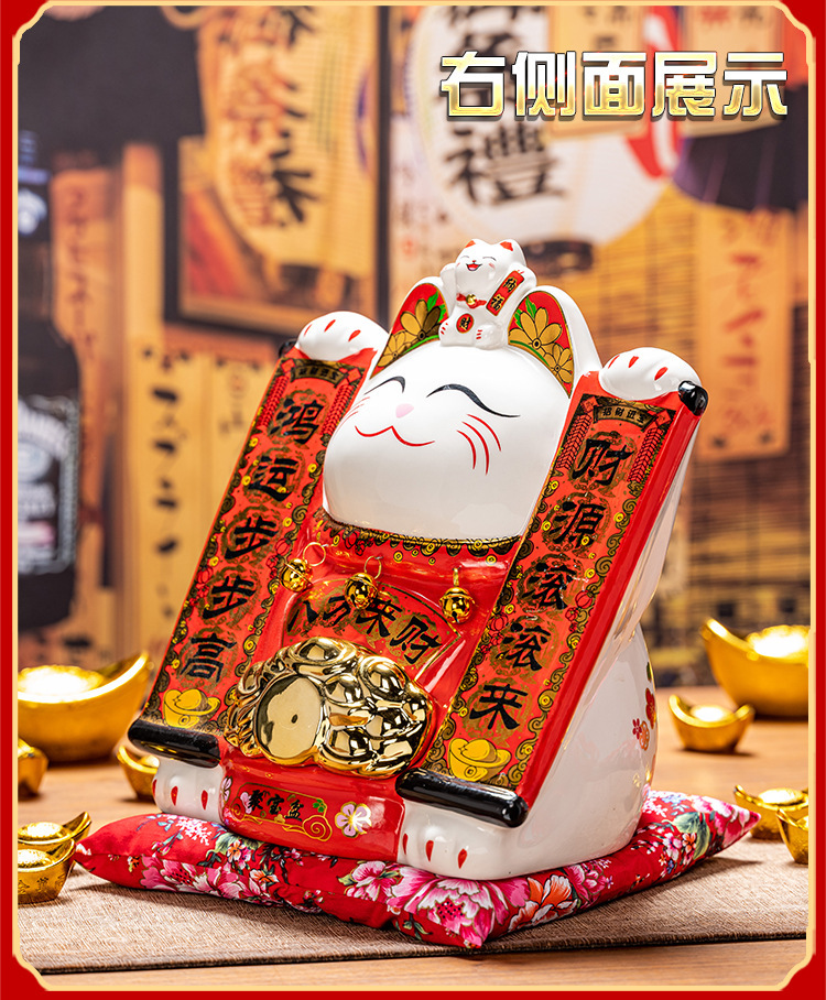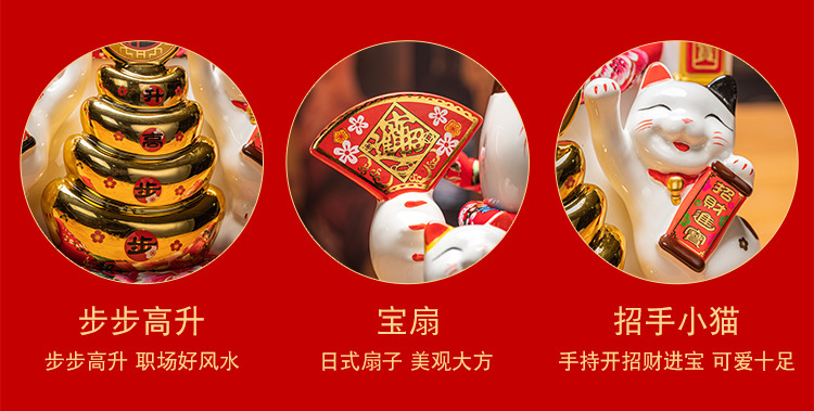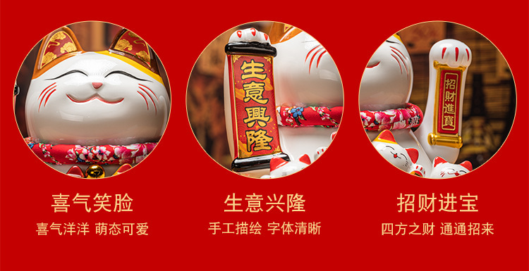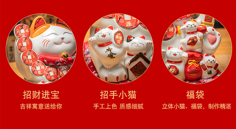 德化陶瓷自动招手摇手招财猫摆件发财猫店铺开业乔迁送礼品收银台