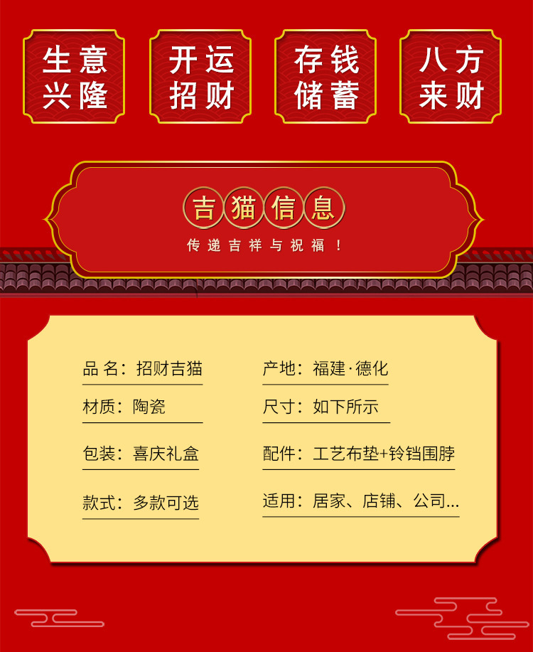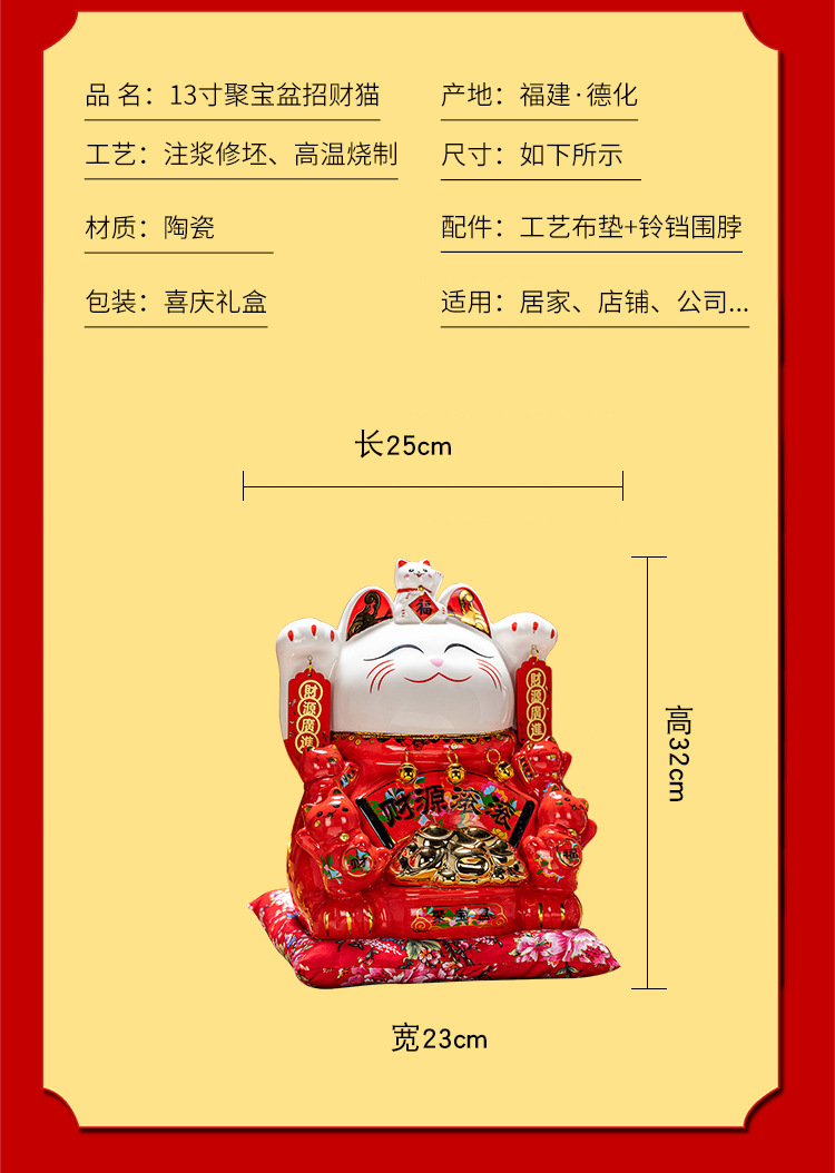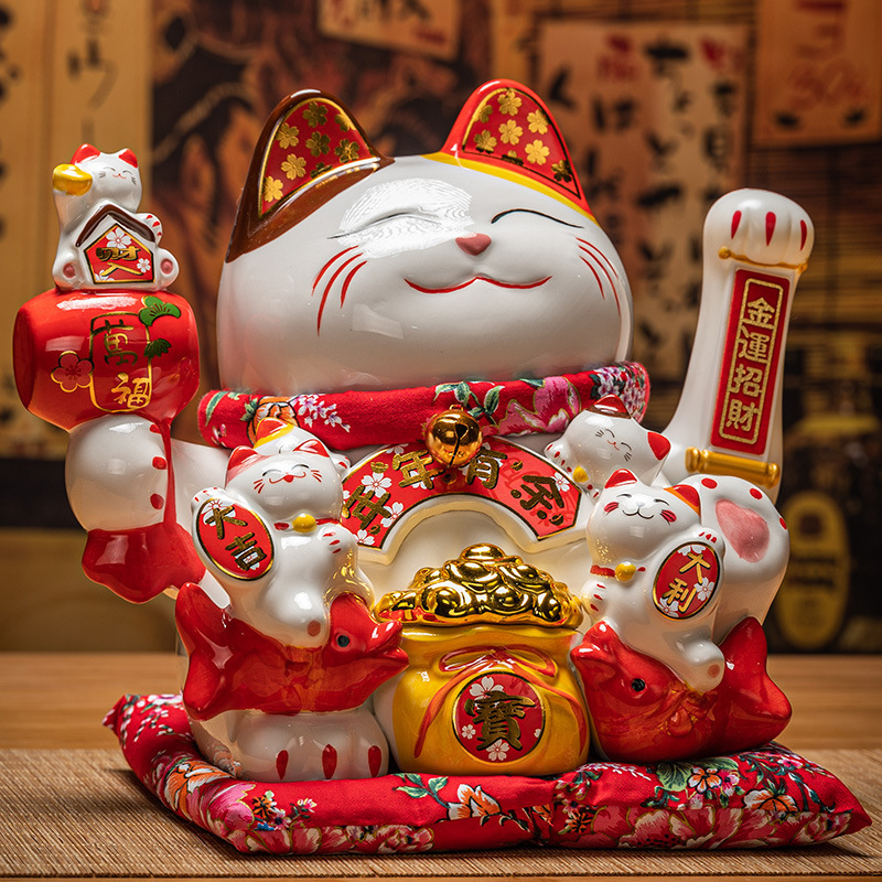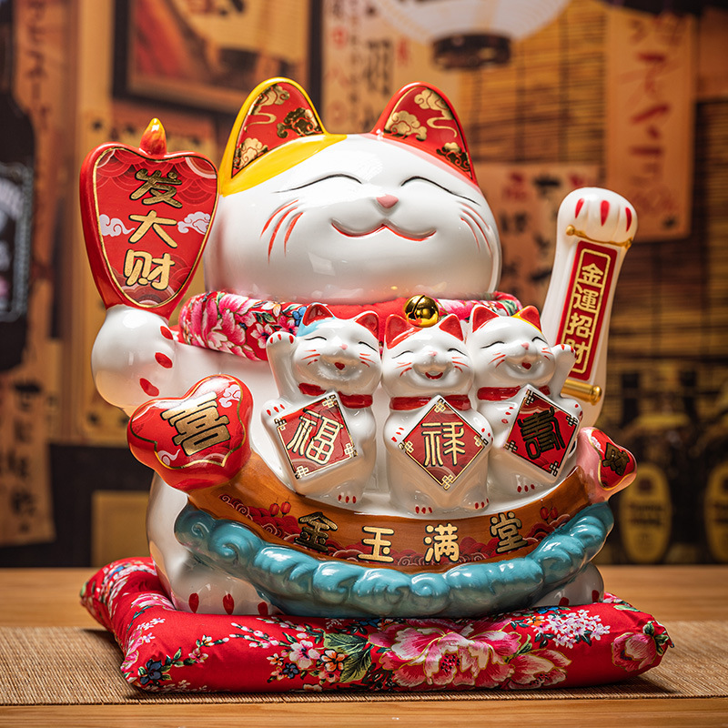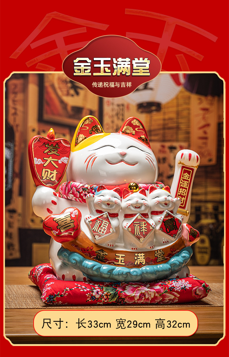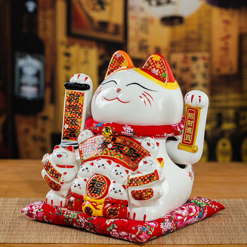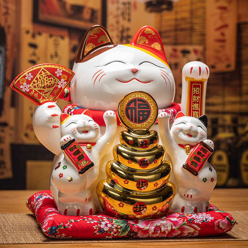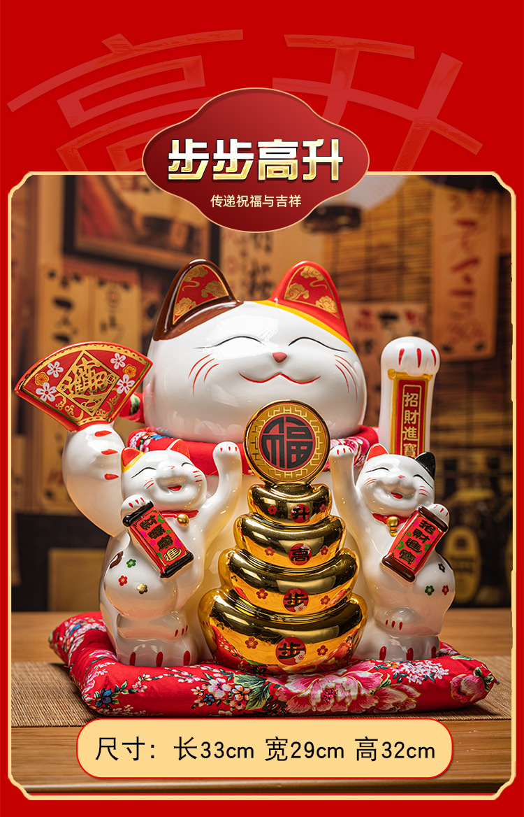 德化陶瓷自动招手摇手招财猫摆件发财猫店铺开业乔迁送礼品收银台