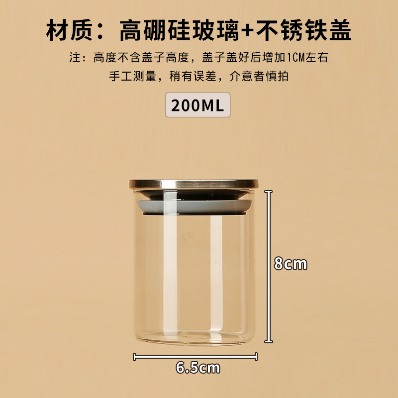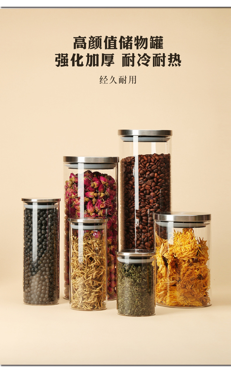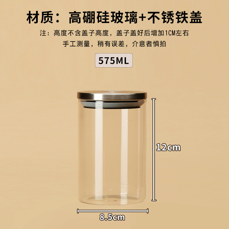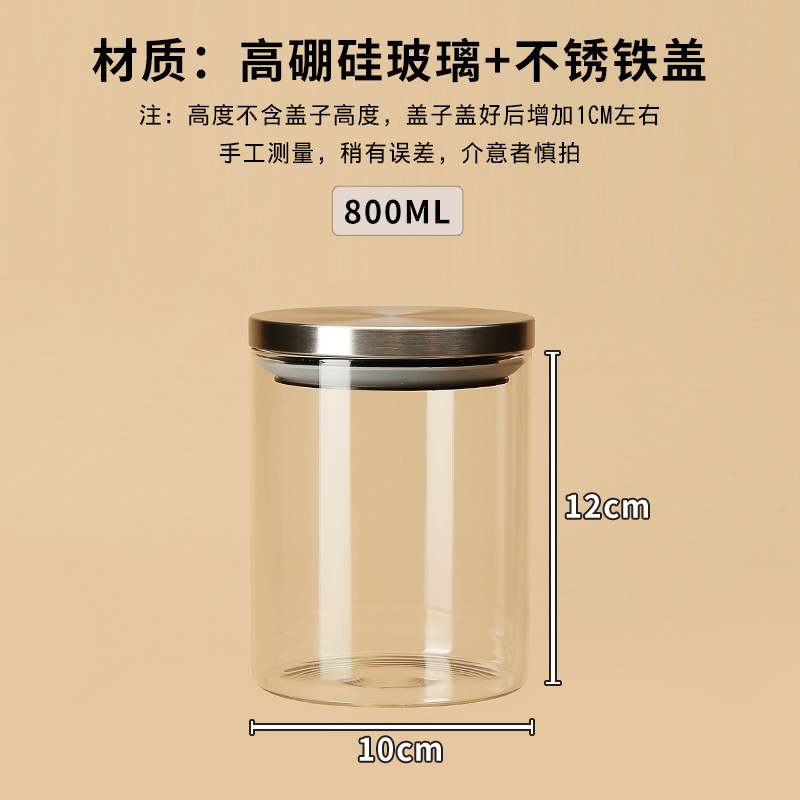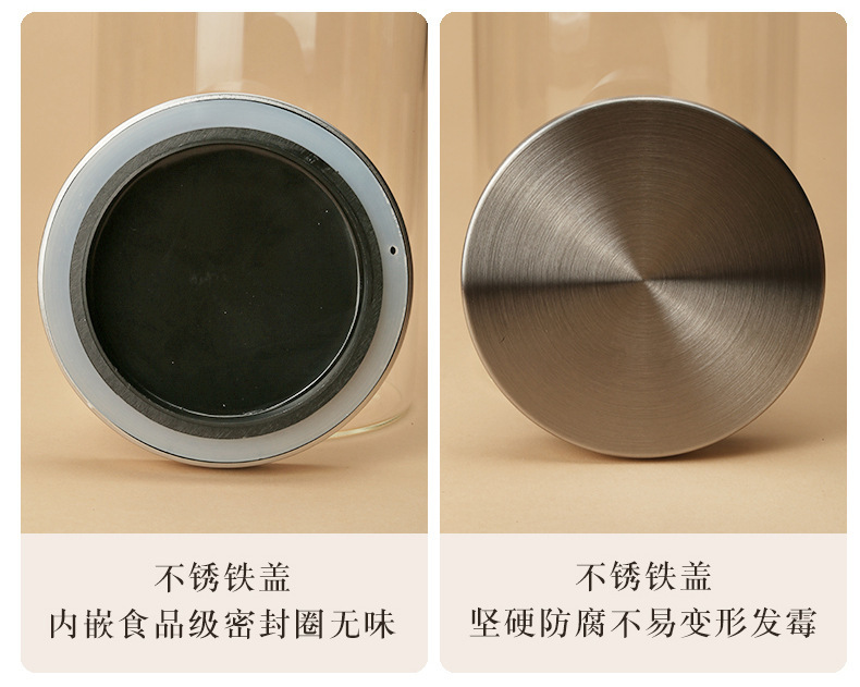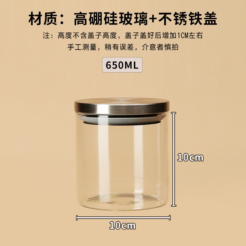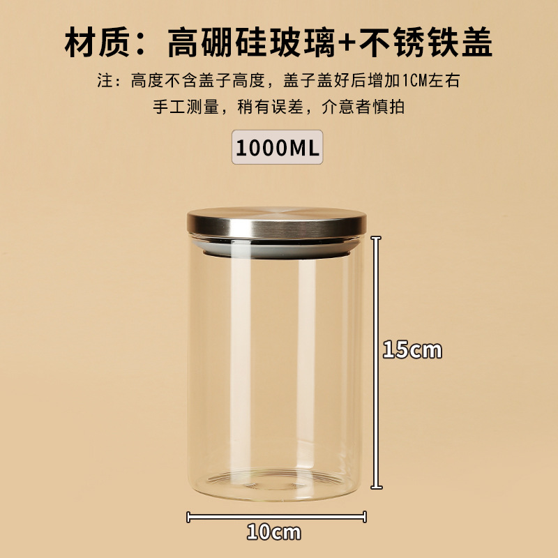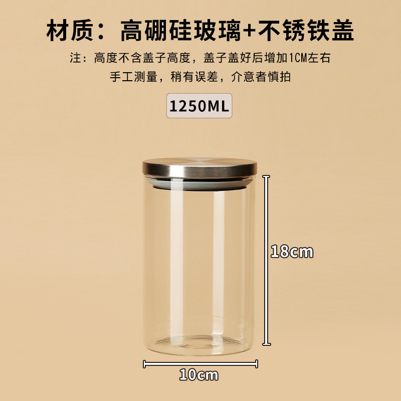 厨房密封储物罐不锈钢盖玻璃透明带盖储物罐玻璃储物罐玻璃罐