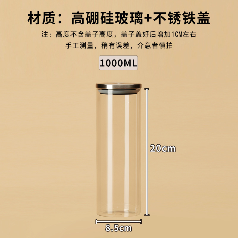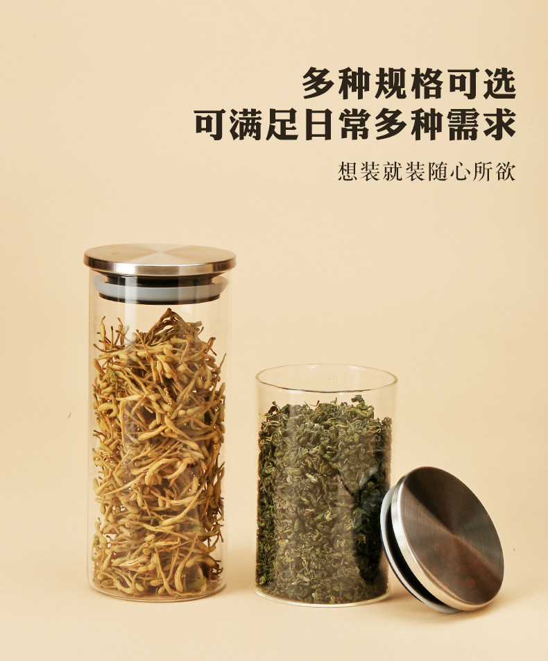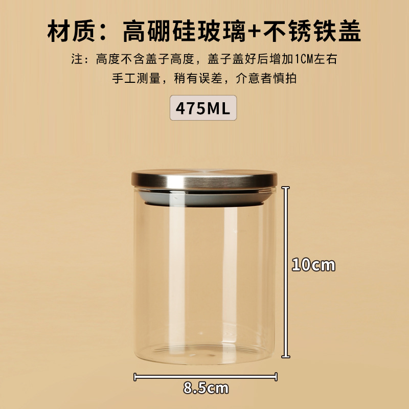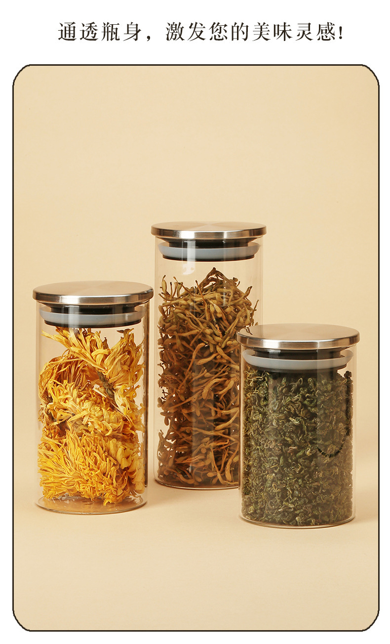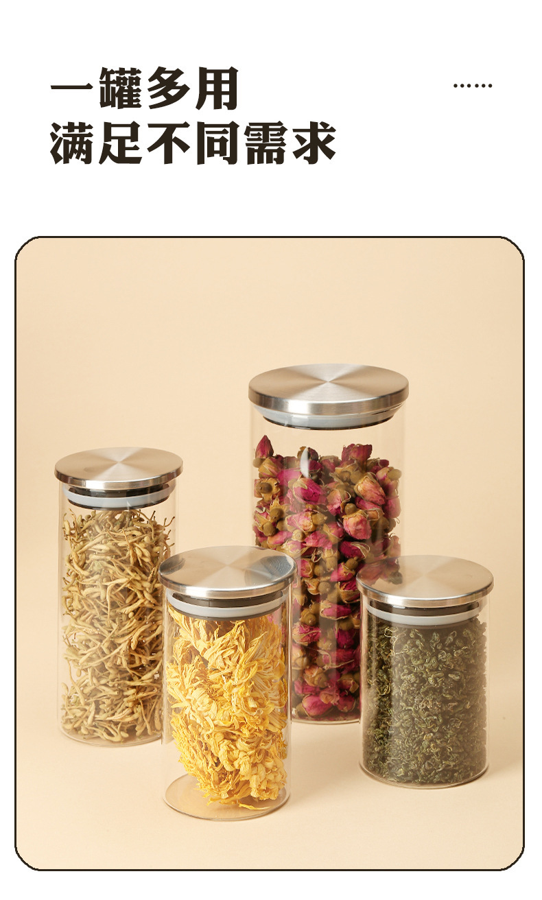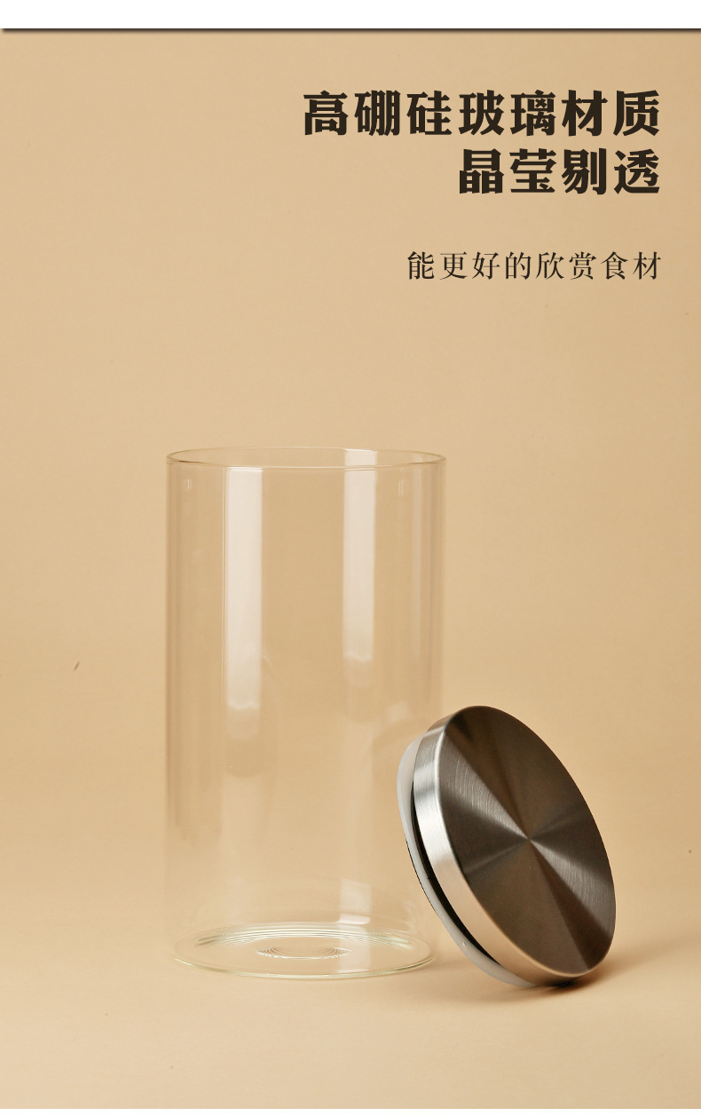 厨房密封储物罐不锈钢盖玻璃透明带盖储物罐玻璃储物罐玻璃罐
