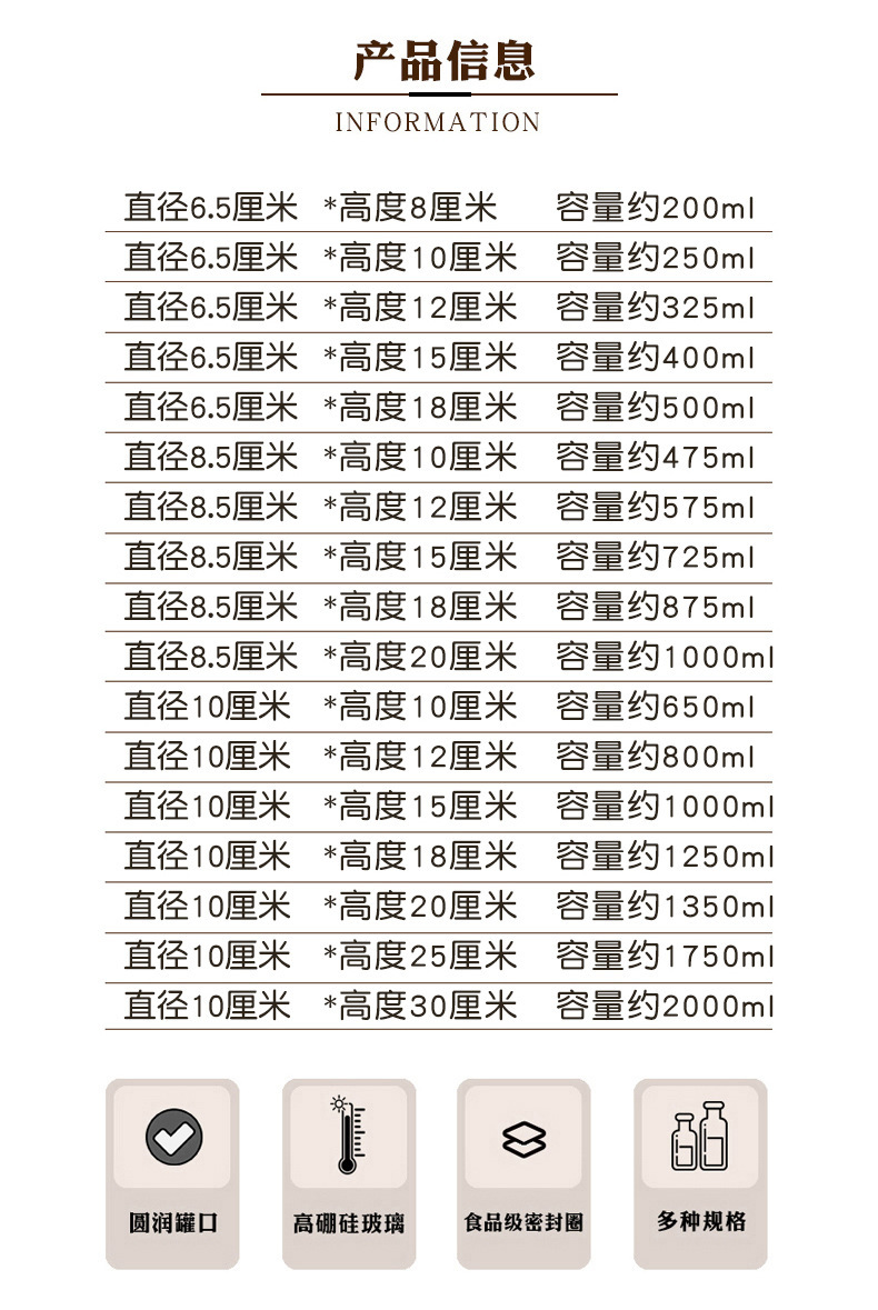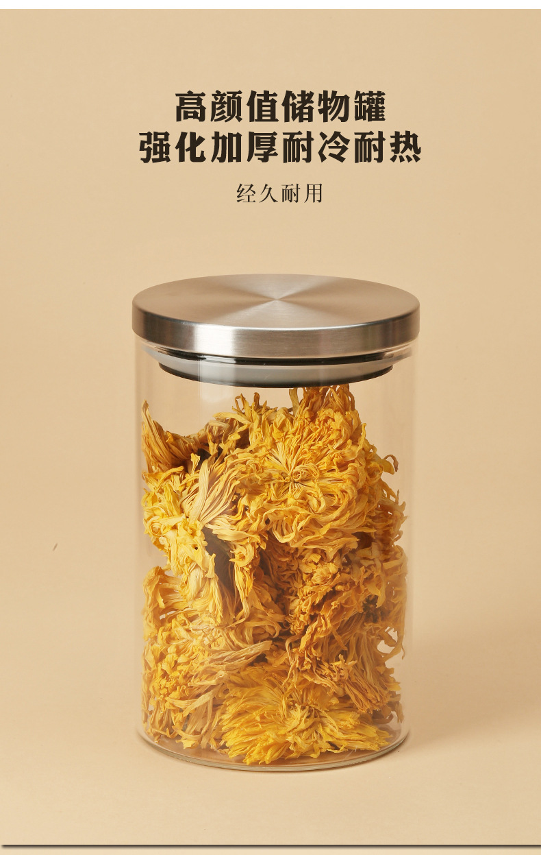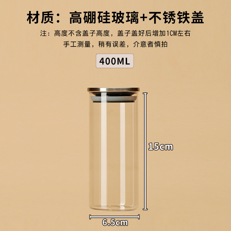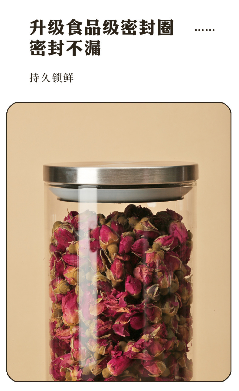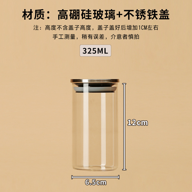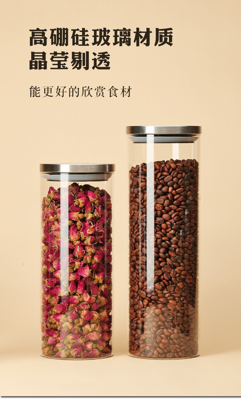 厨房密封储物罐不锈钢盖玻璃透明带盖储物罐玻璃储物罐玻璃罐