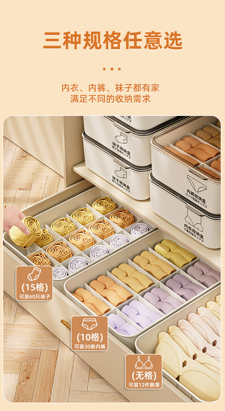 内衣裤袜子收纳盒贴身衣物收纳神器多功能防尘家用宿舍三合一收纳