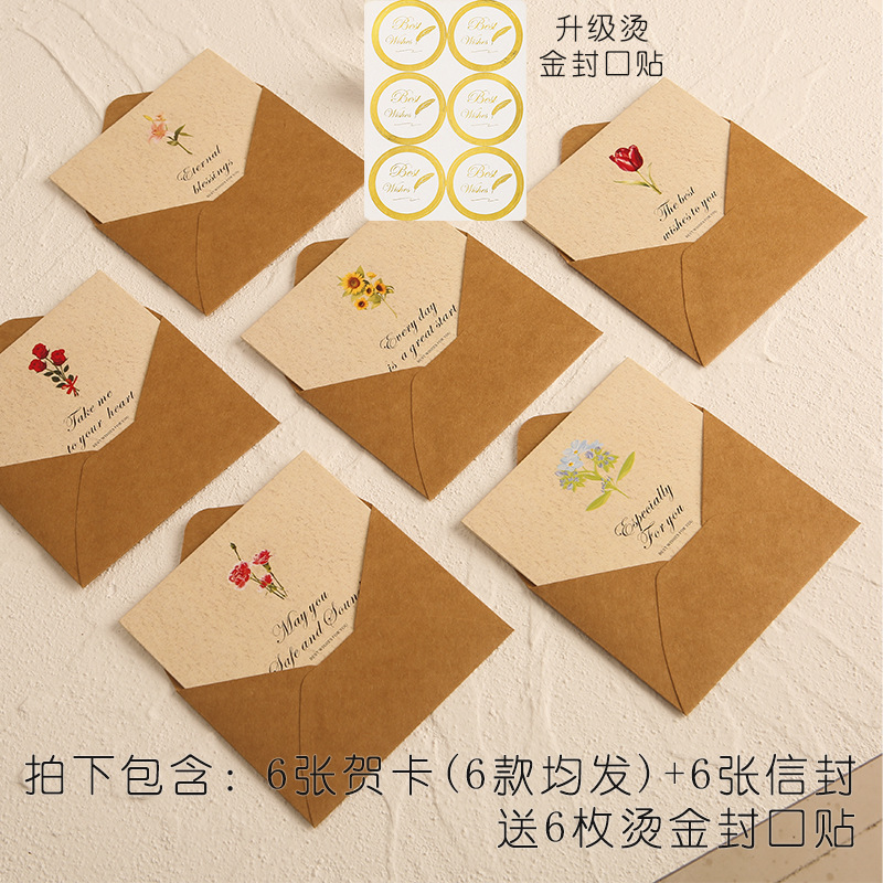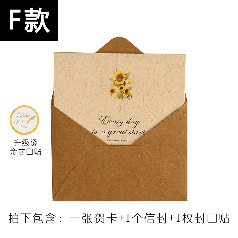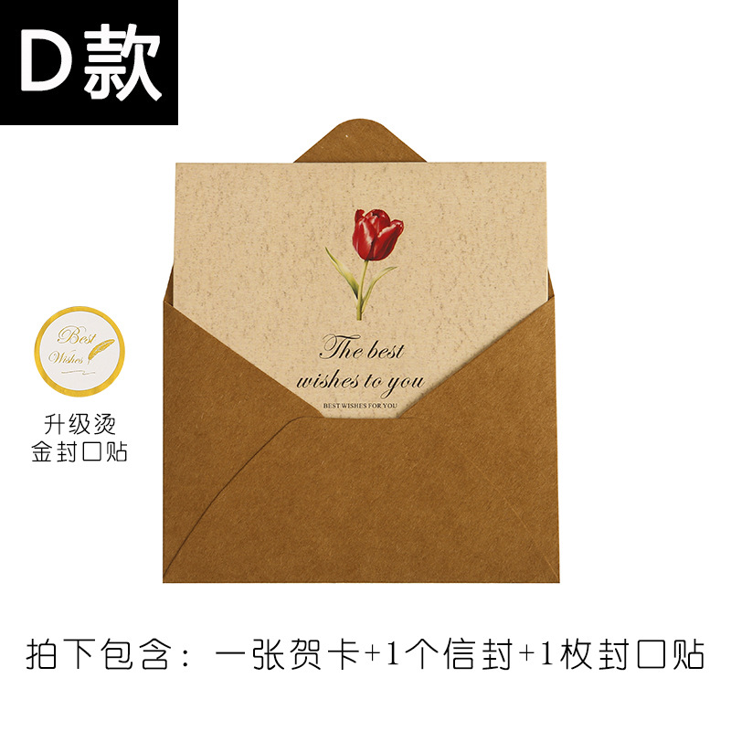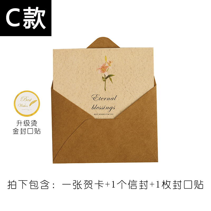 粤洋新品花语贺卡叶语祝福卡复古感恩圣诞节生日对折叠感谢留言卡
