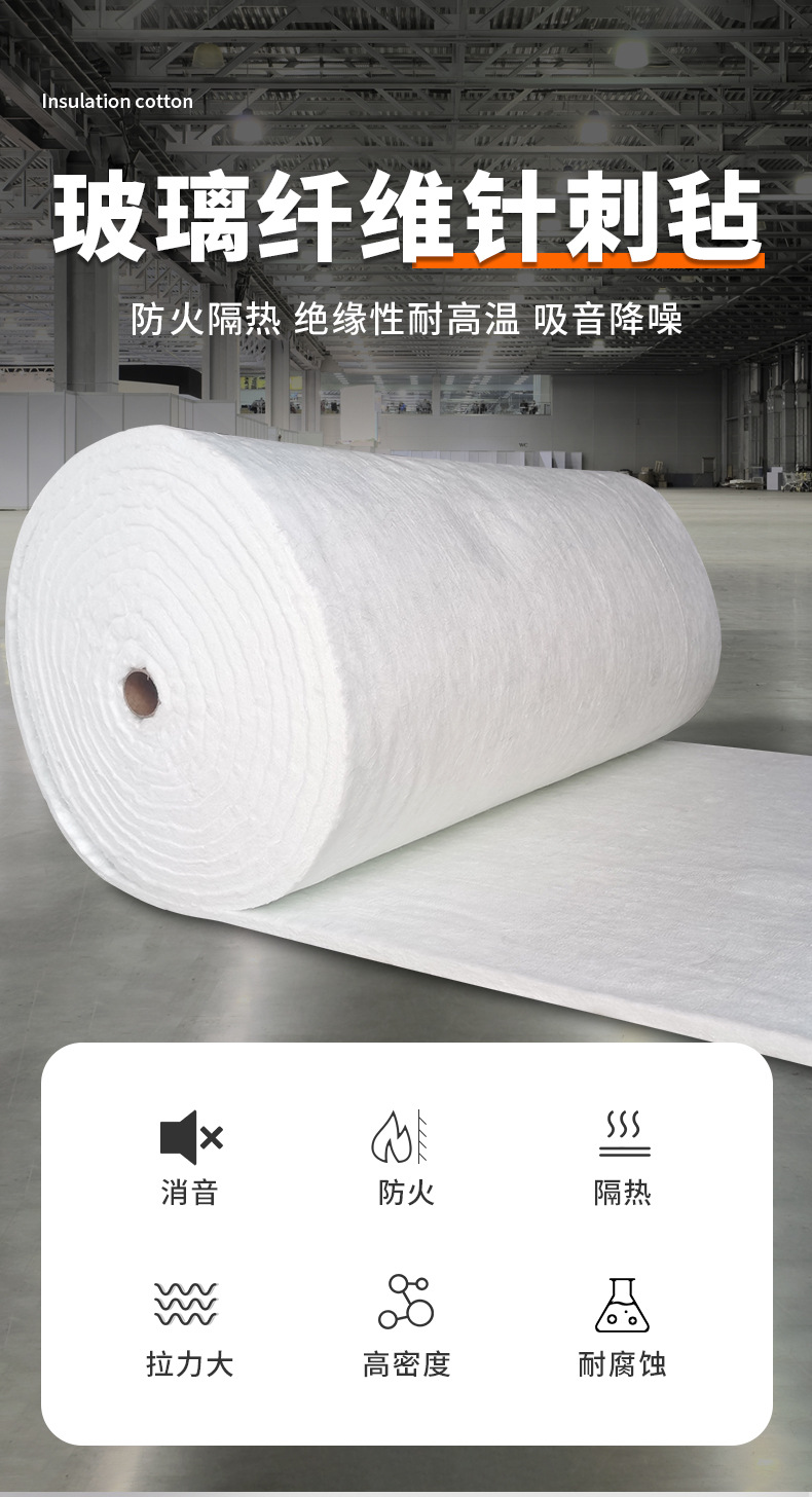 防火棉耐高温玻璃纤维针刺毡电磁加热保温棉排气管消音烟管隔热棉