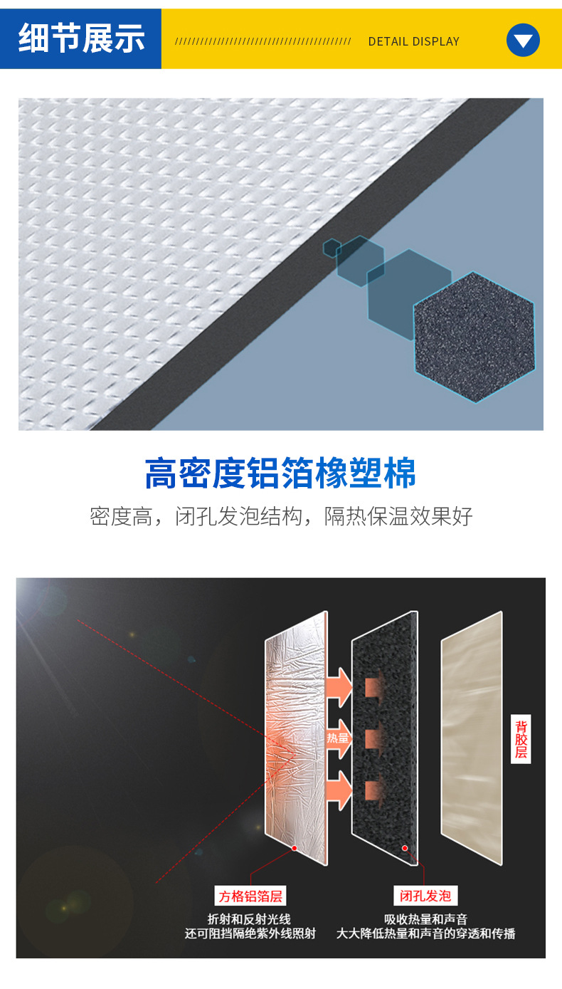 隔热棉铝箔自粘屋顶橡塑保温棉楼顶耐高温防火防晒隔热保温橡塑板