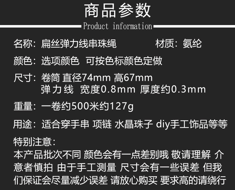 大卷500米手串穿珠子文玩手链线韩国造扁形水晶线松紧线弹力线绳