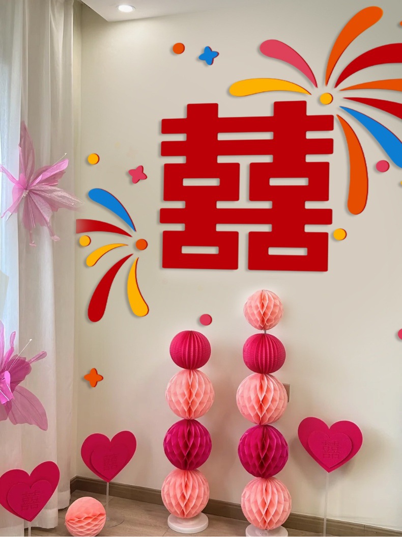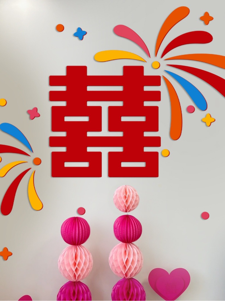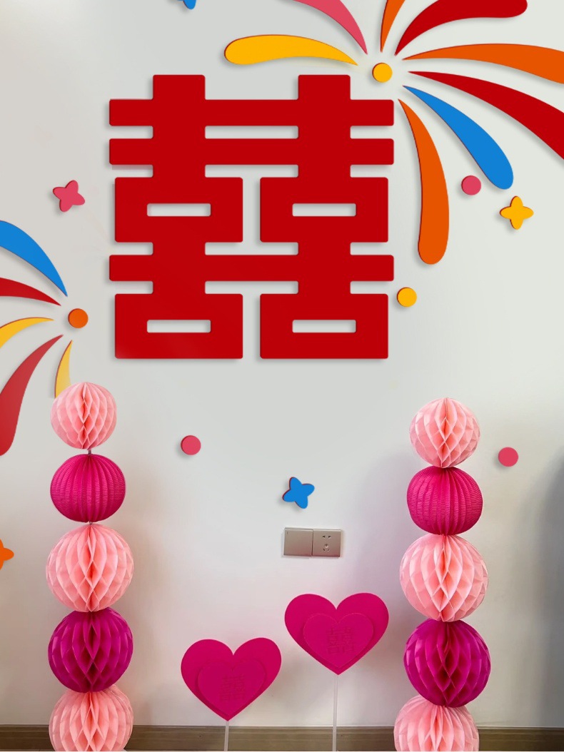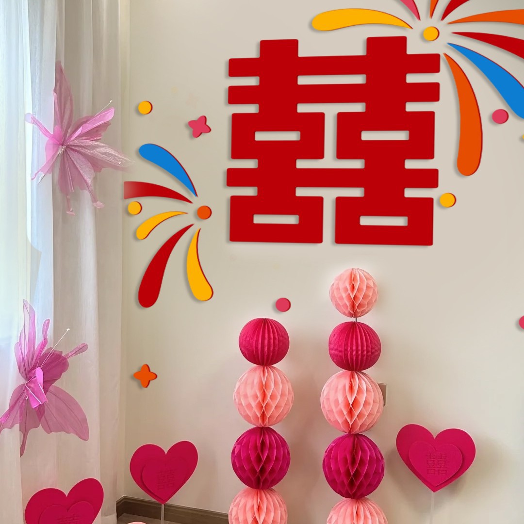 多巴胺结婚用品拉花床头布置客厅喜字背景墙头婚房布置装饰大全