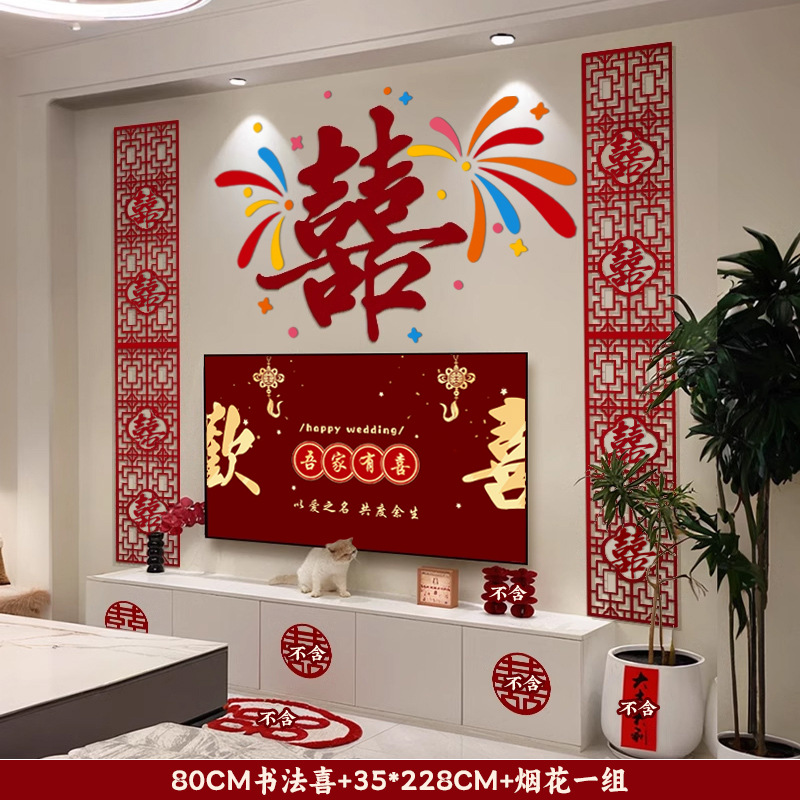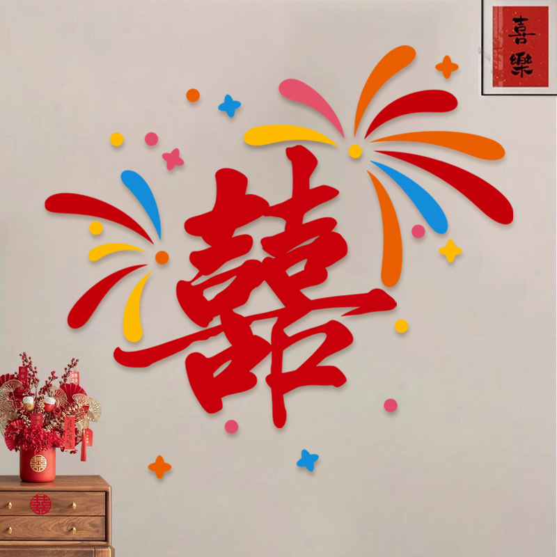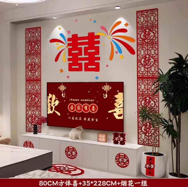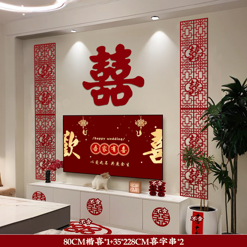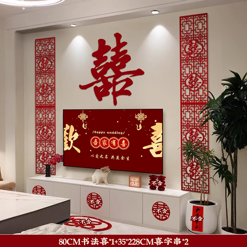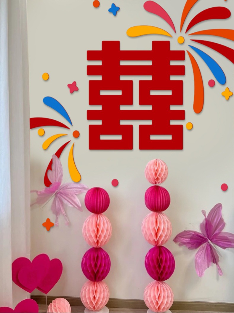 多巴胺结婚用品拉花床头布置客厅喜字背景墙头婚房布置装饰大全