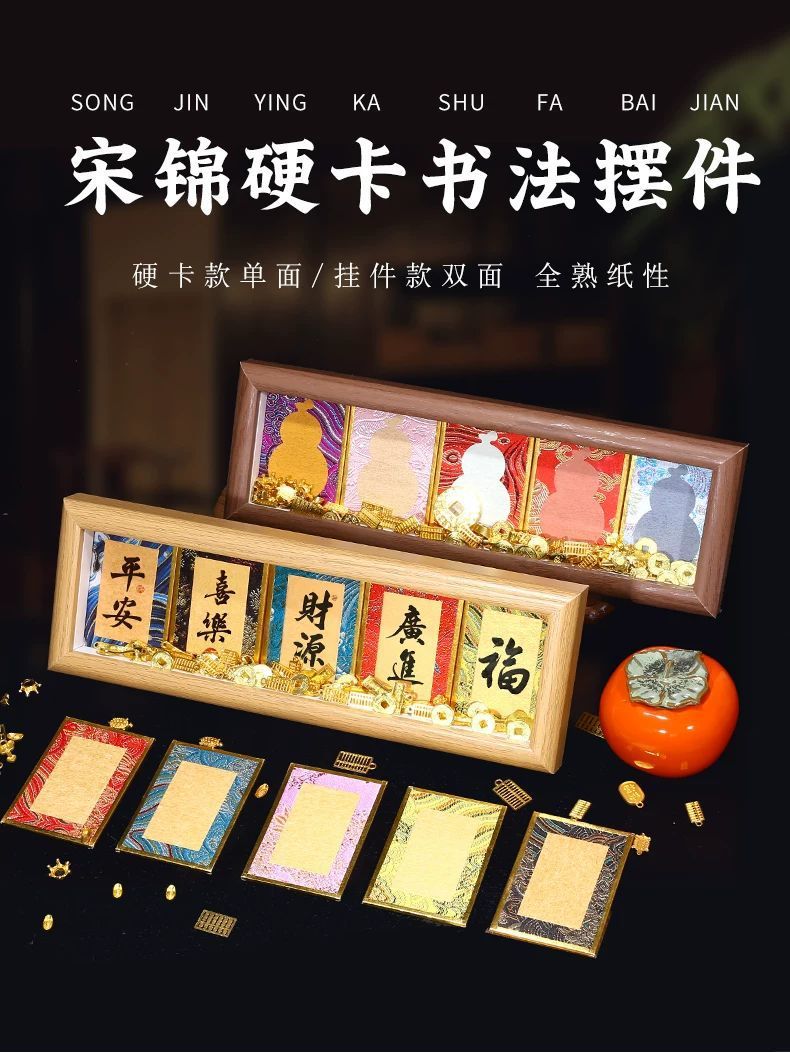 厂家直销迷你褚笺宋锦硬卡书法摆台空白相框文创礼品国风宣纸手写