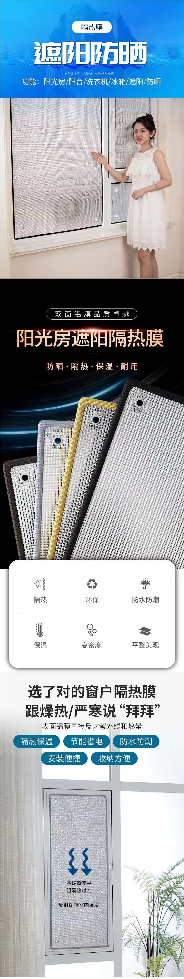 阳光房隔热膜玻璃防晒阳台窗户遮阳板降温免打孔钉制可移除