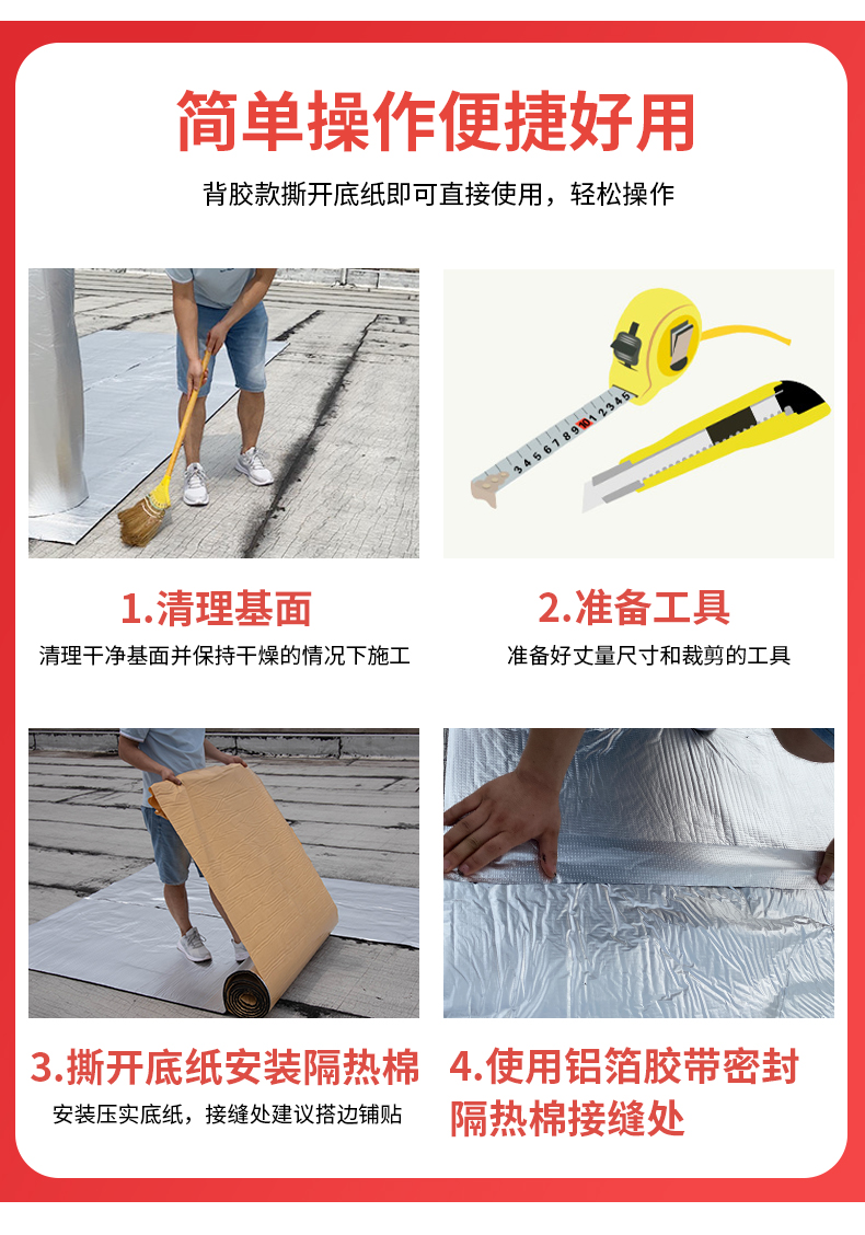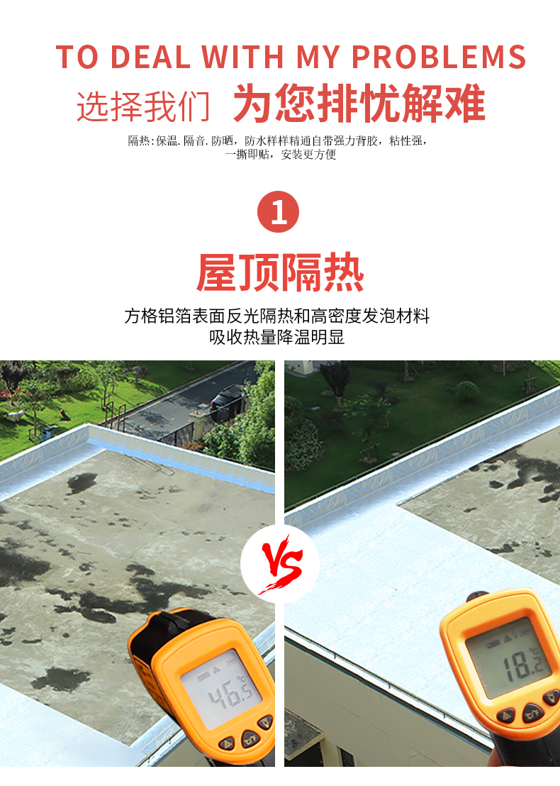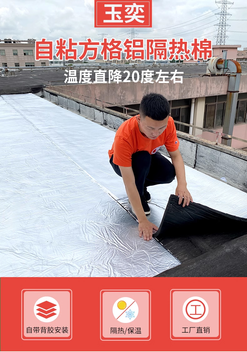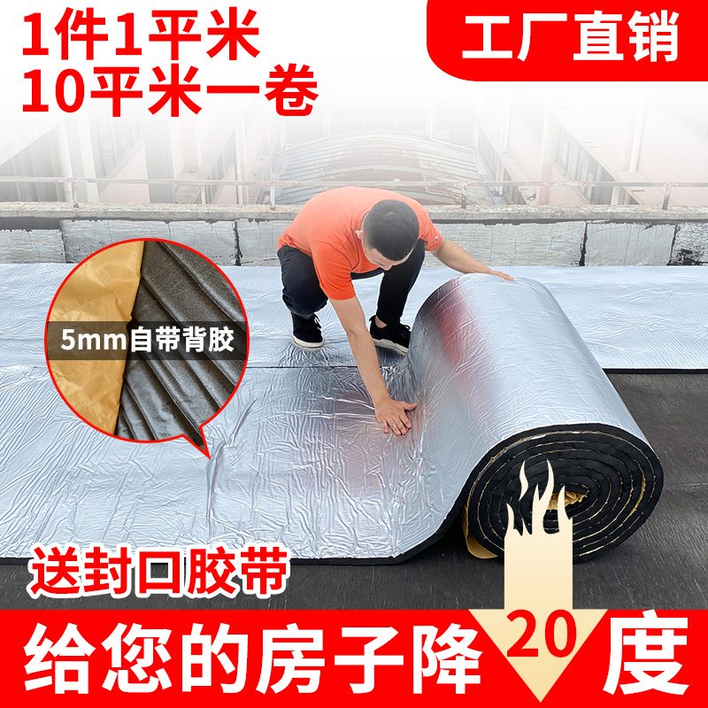 屋顶保温隔热棉耐高温防火布楼顶阳光房顶棚隔热膜房顶自粘隔热板