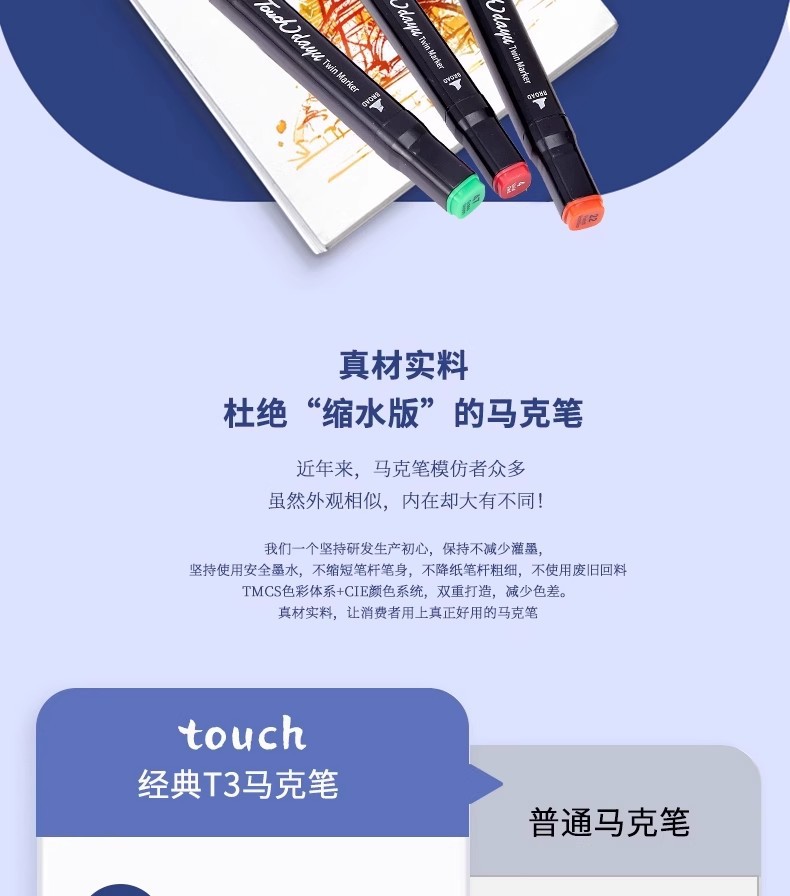 touch马克笔套装油性双头儿童学生美术生水彩笔24/48色速干绘画笔