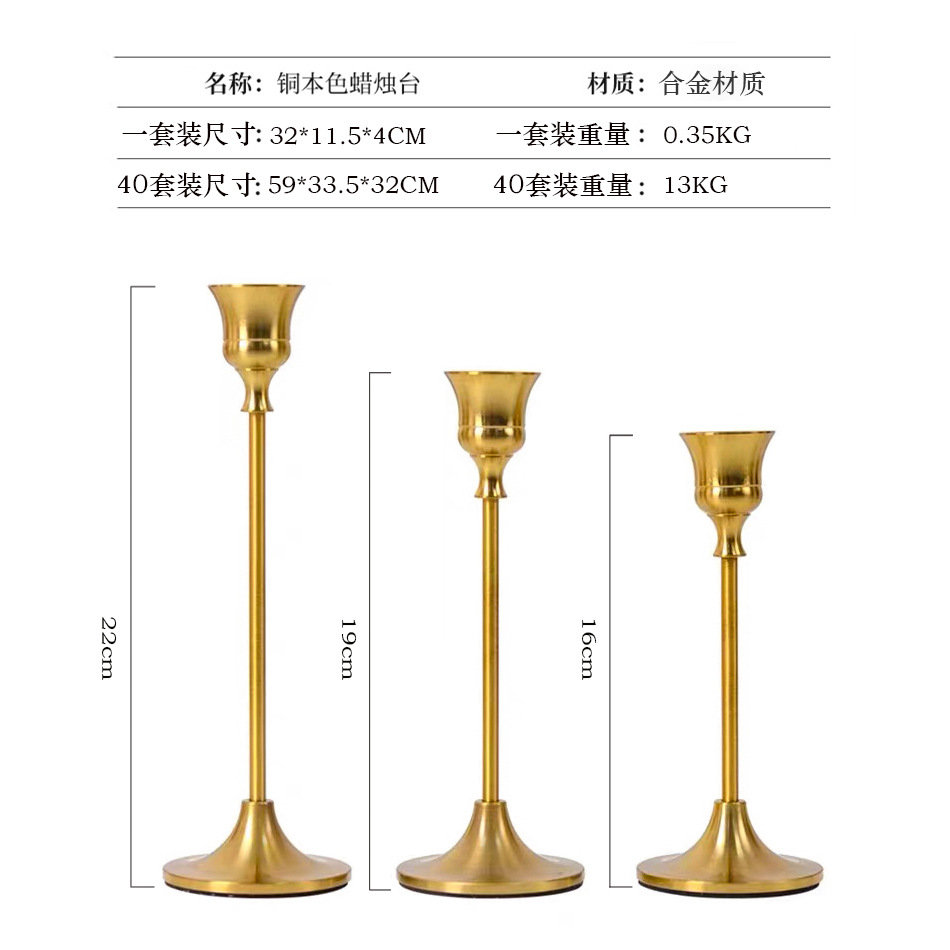 跨境欧式复古黄铜色蜡烛台浪漫圣诞烛光晚餐摆件婚庆道具蜡烛架底