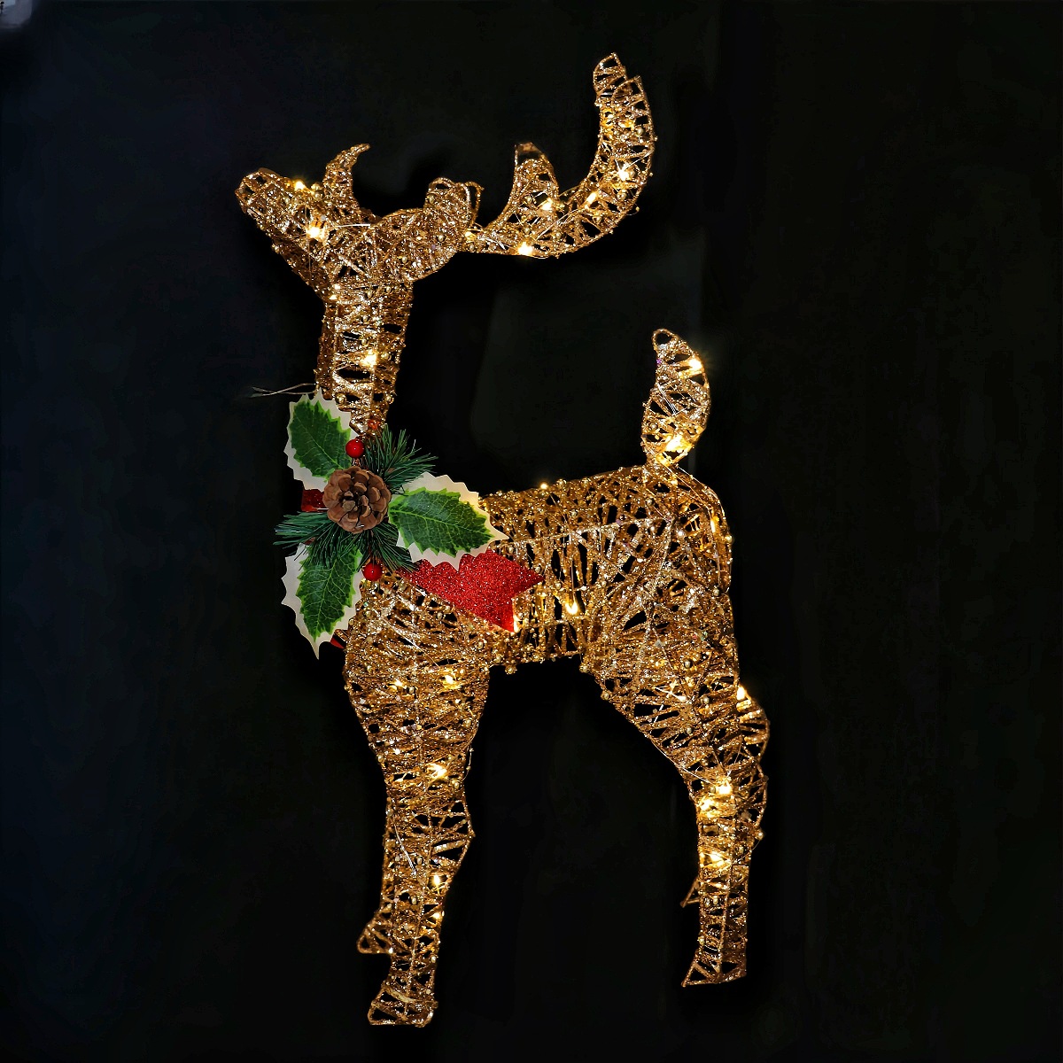 2025圣诞麋鹿铁艺圣诞树下装饰发光抬头麋鹿圣诞装饰鹿摆件圣诞鹿