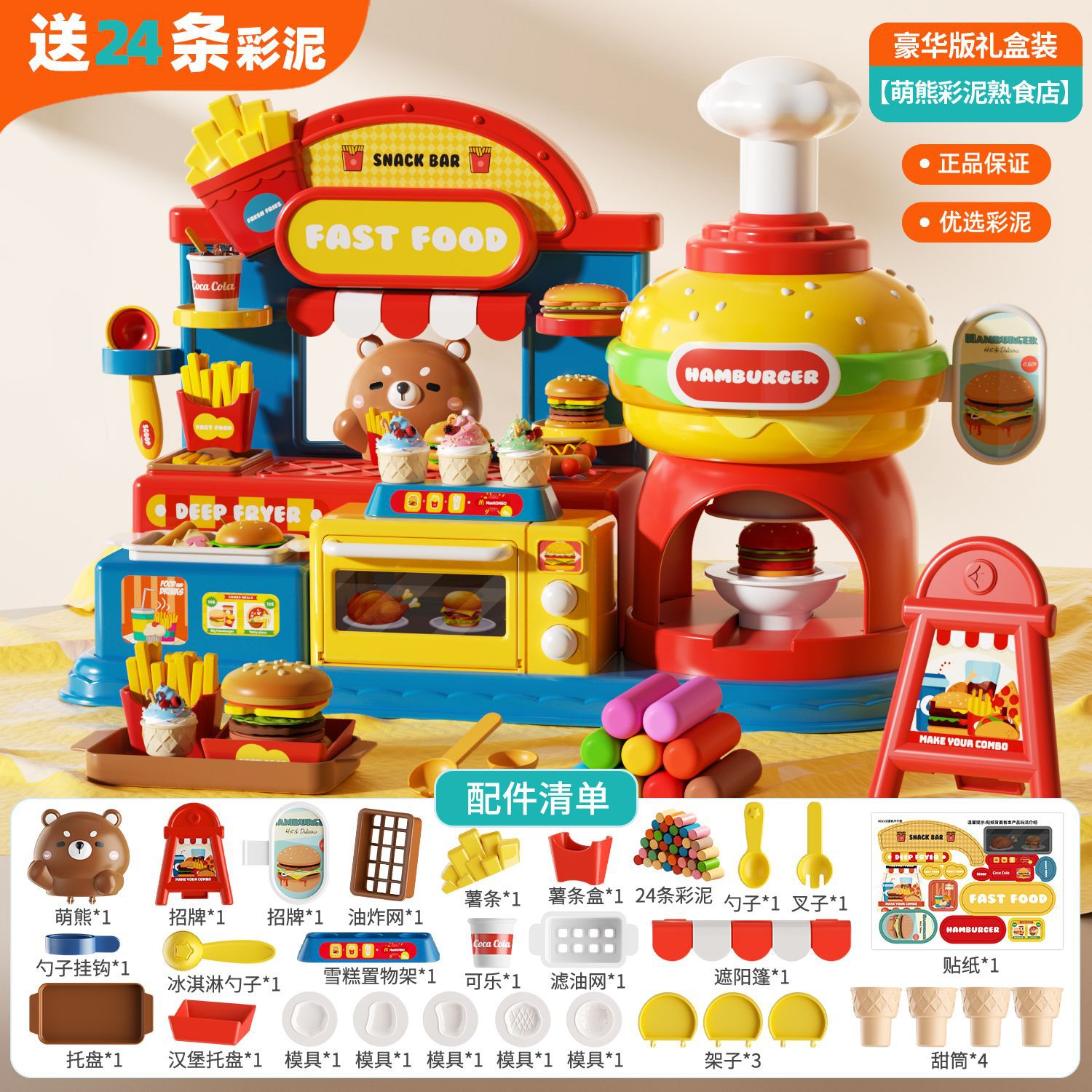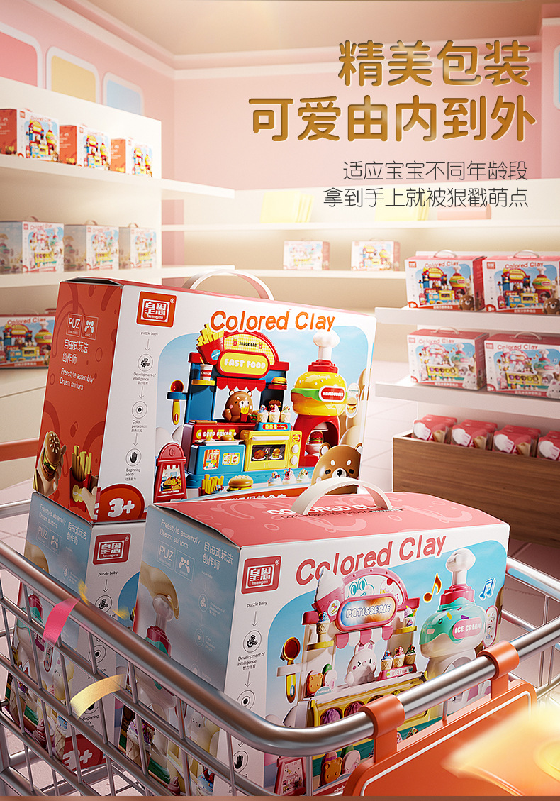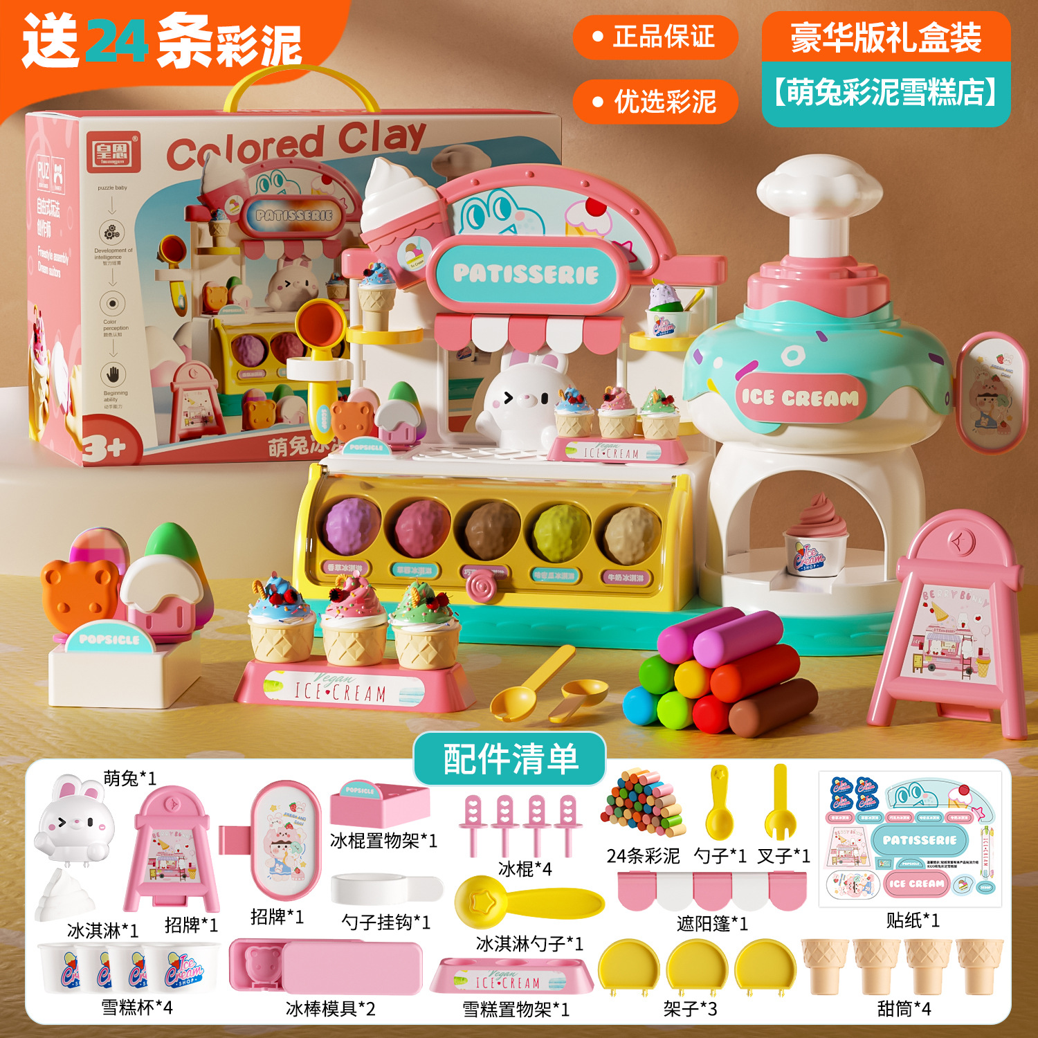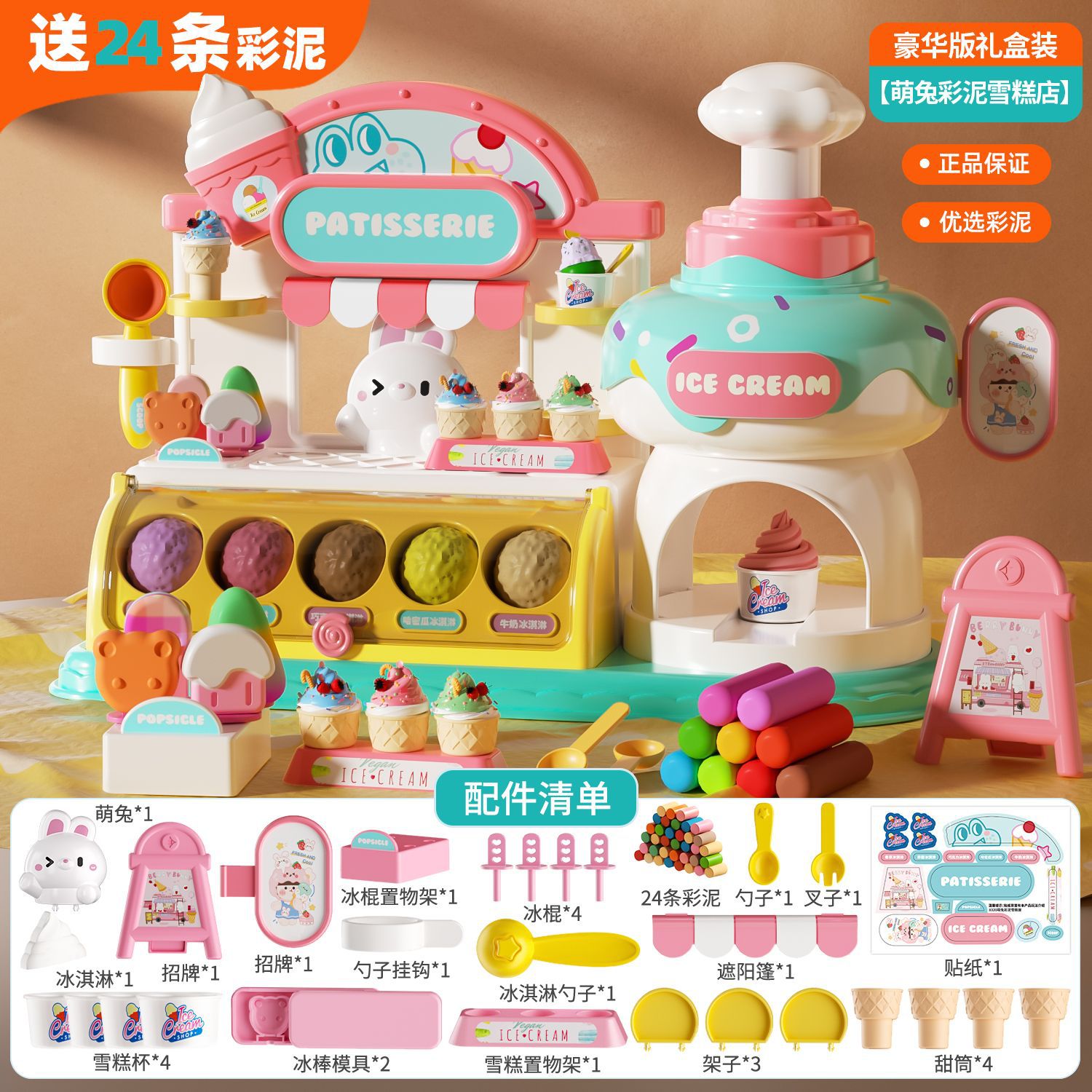 2024新款过家家萌兔萌熊冰淇淋彩泥雪糕店超轻粘土橡皮泥玩具批发