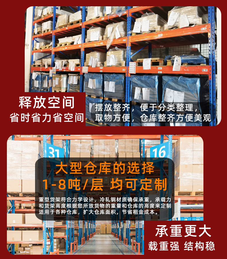 库房加厚横梁式托盘重型仓储货架高位仓库仓储货架 重型货架