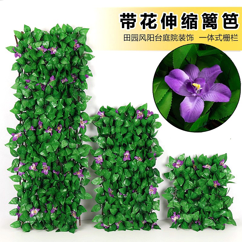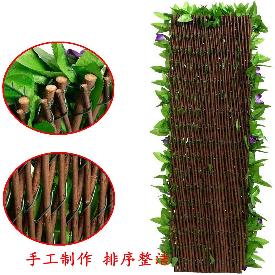 仿真篱笆户外庭院绿植伸缩围栏塑料叶子藤条围墙花园装饰仿真栅栏