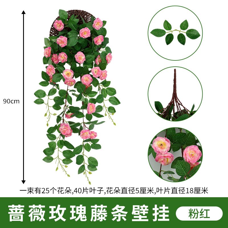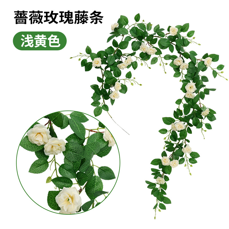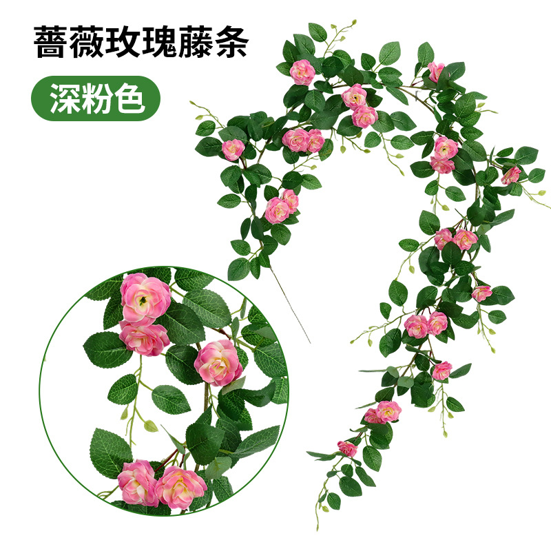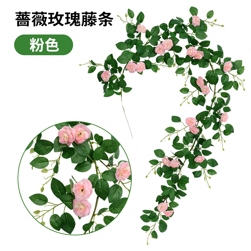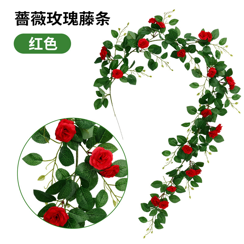 仿真蔷薇玫瑰花藤假花藤条藤蔓塑料花吊顶空调水管道遮挡阳台装饰