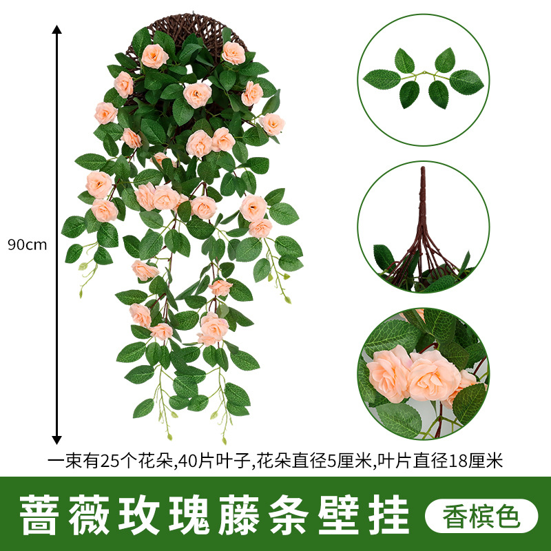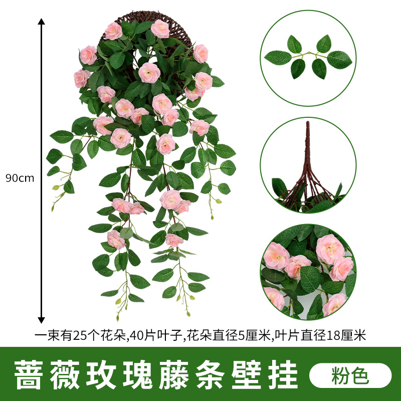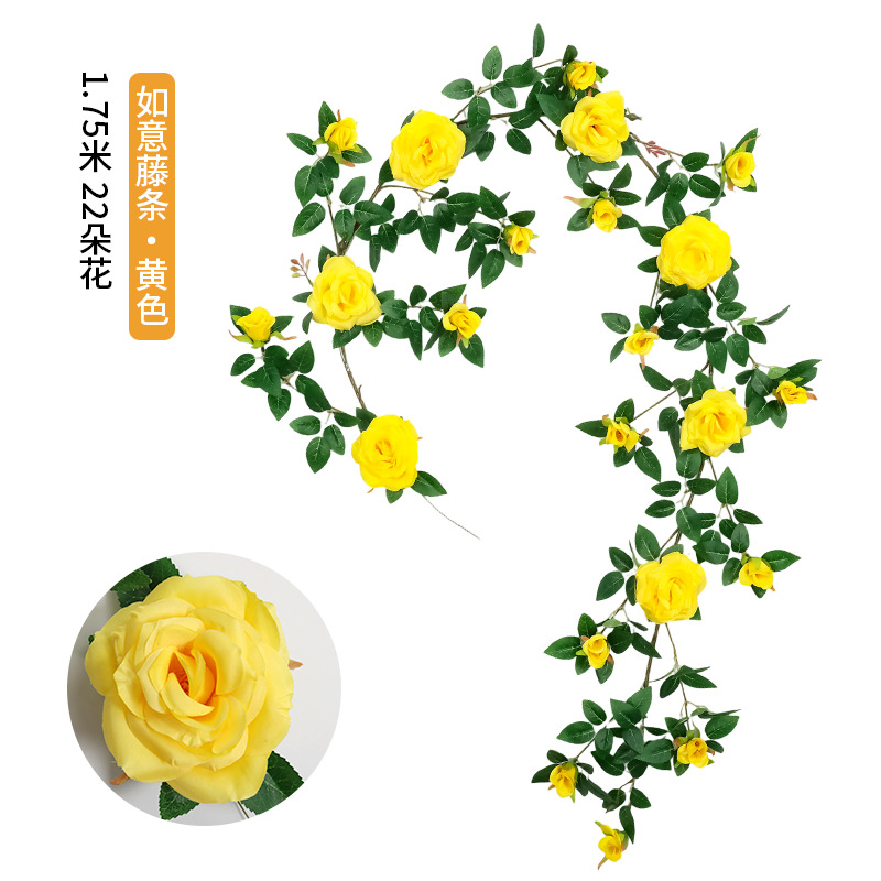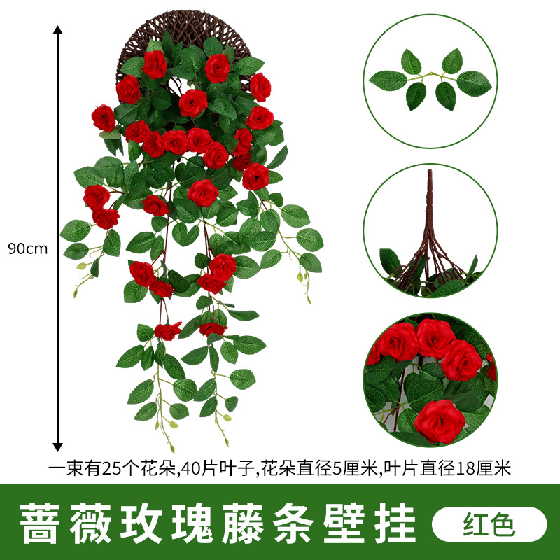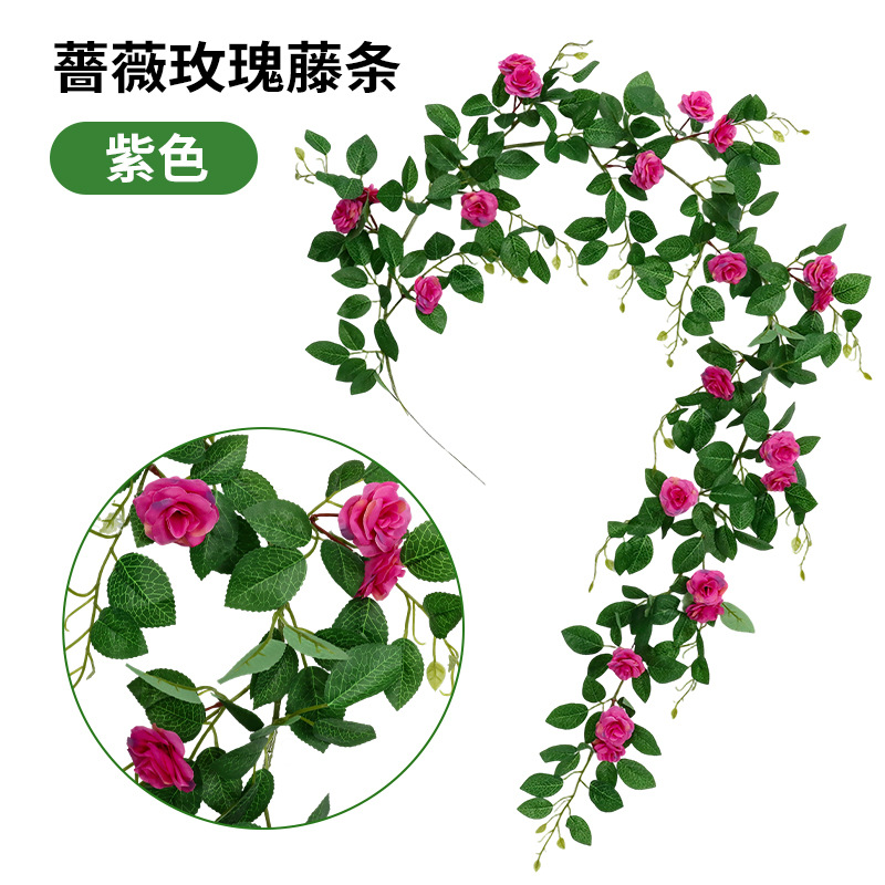 仿真蔷薇玫瑰花藤假花藤条藤蔓塑料花吊顶空调水管道遮挡阳台装饰