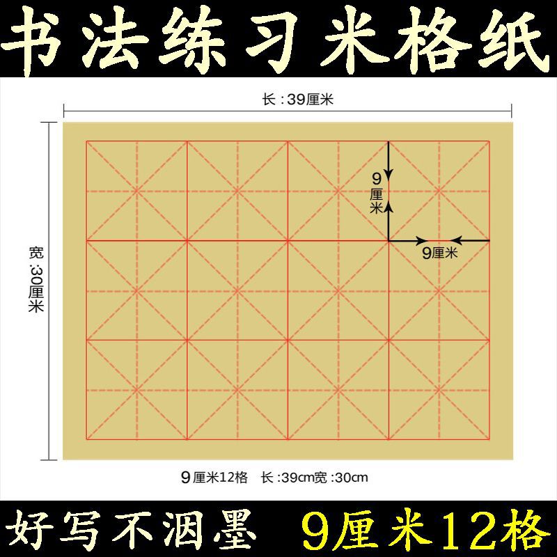 批发9厘米12格毛边米格纸中小学生毛笔书法培训练习纸半生半熟纸