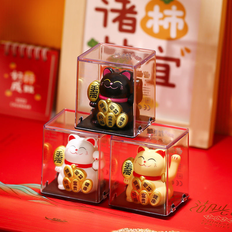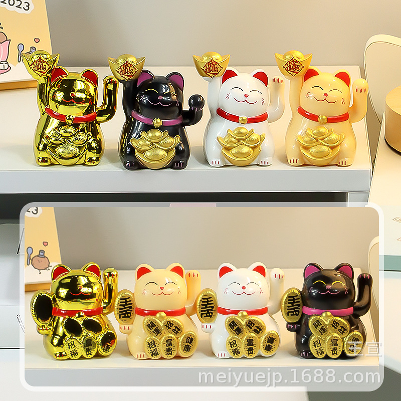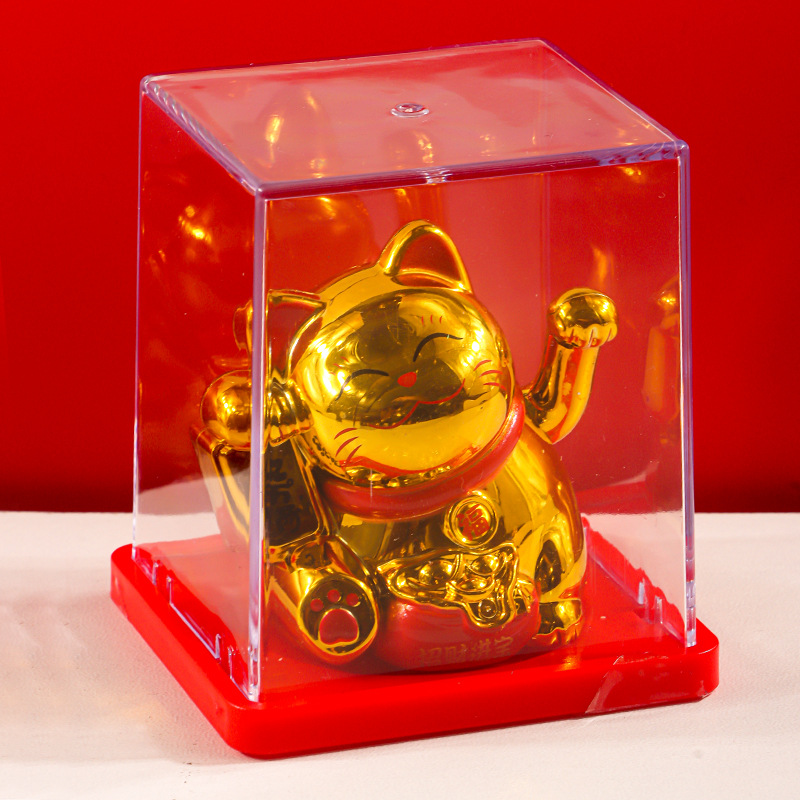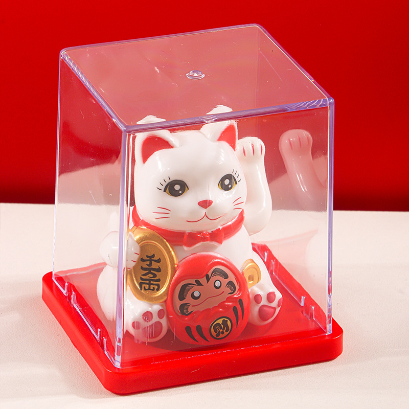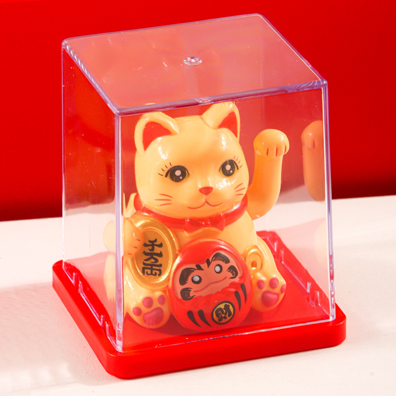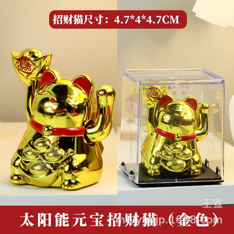 跨境迷你2寸招财猫太阳能摆件自动招手猫车载装饰前台摆件小礼品