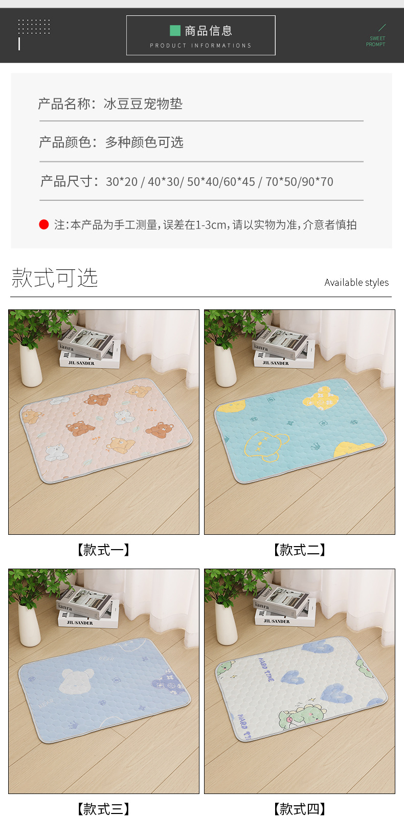 跨境批发宠物冰丝垫夏季狗狗垫猫咪凉感冰豆豆冰丝垫子宠物垫子夏