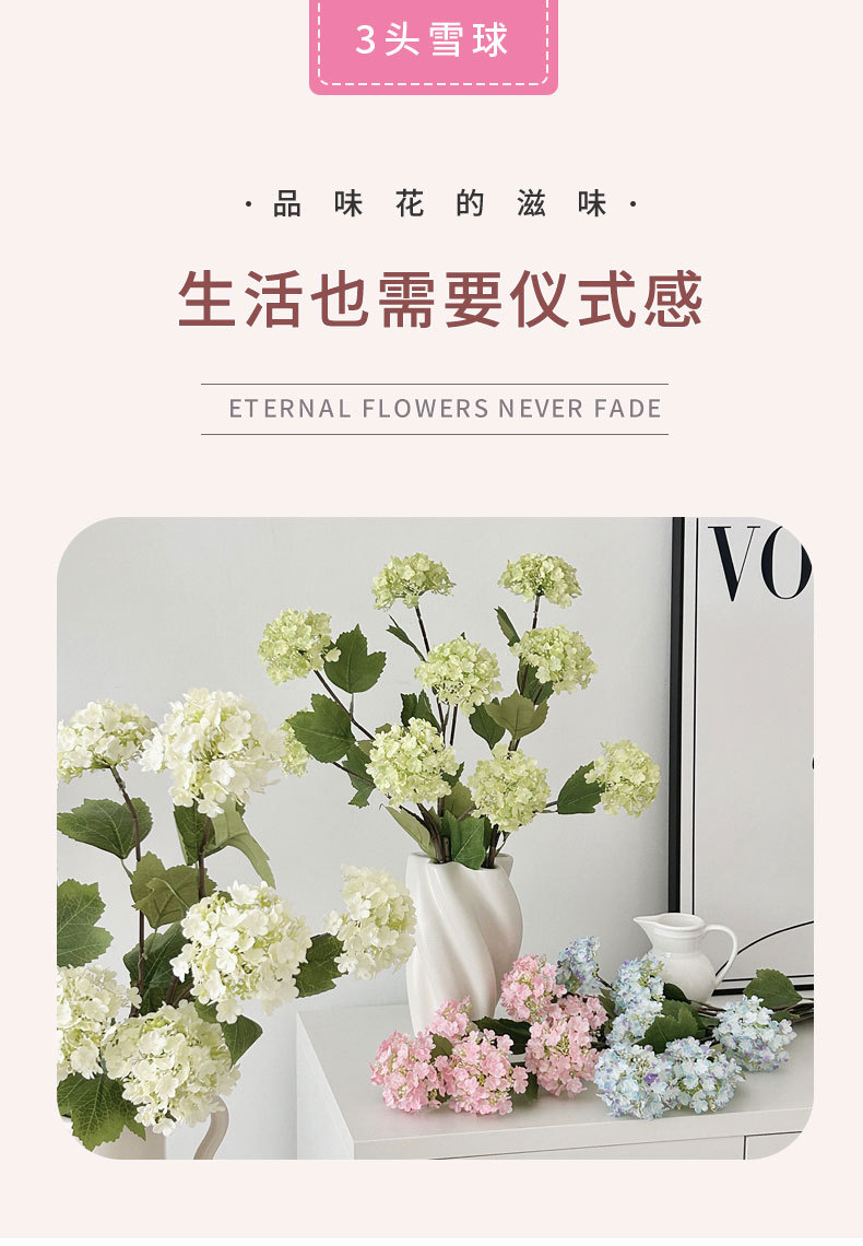 3头绣球雪球仿真花家居装饰客厅摆放假花婚礼堂插花布置拍照道具