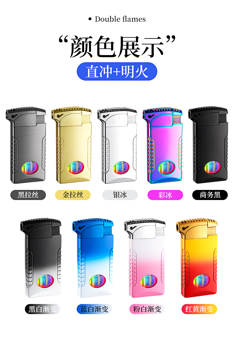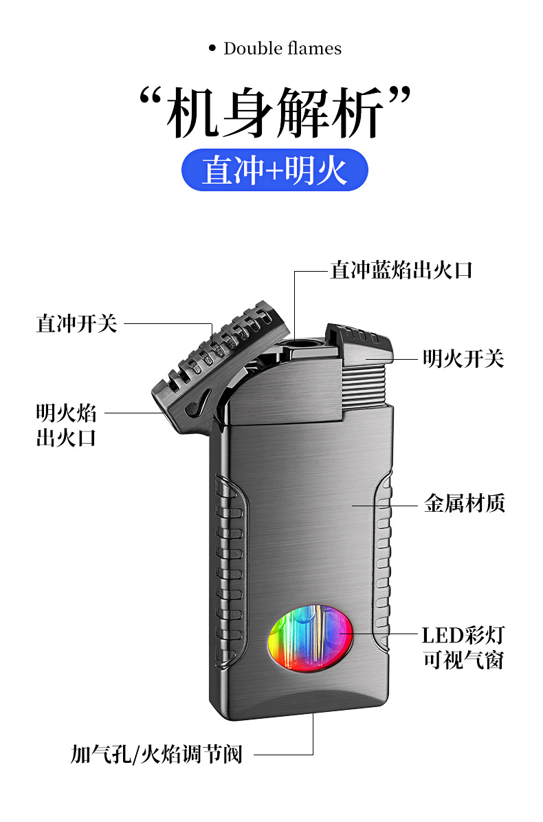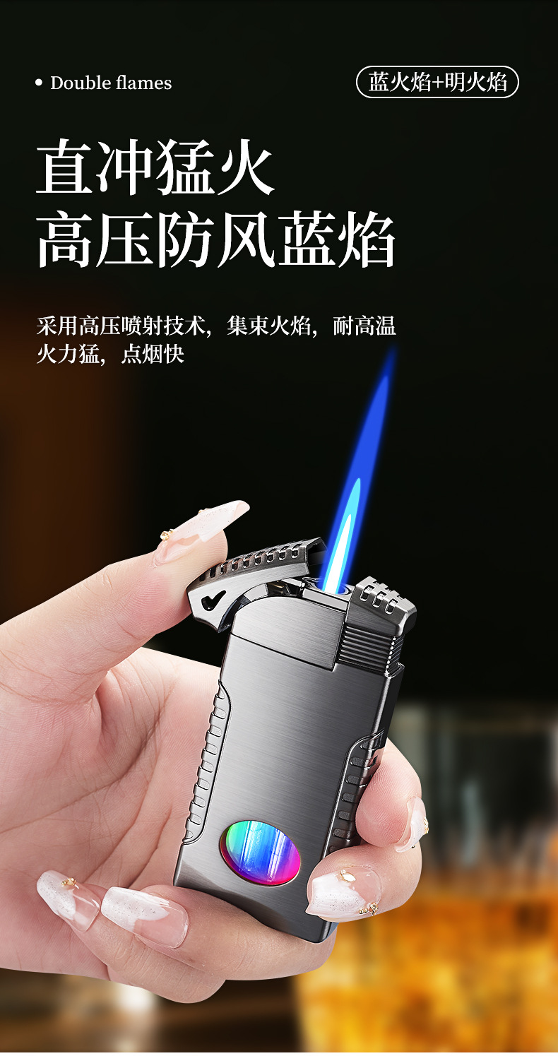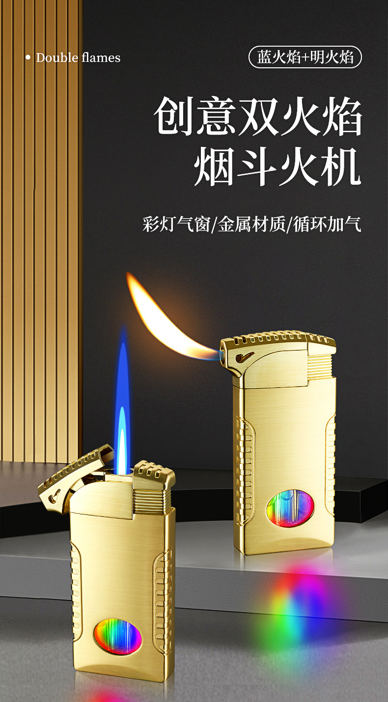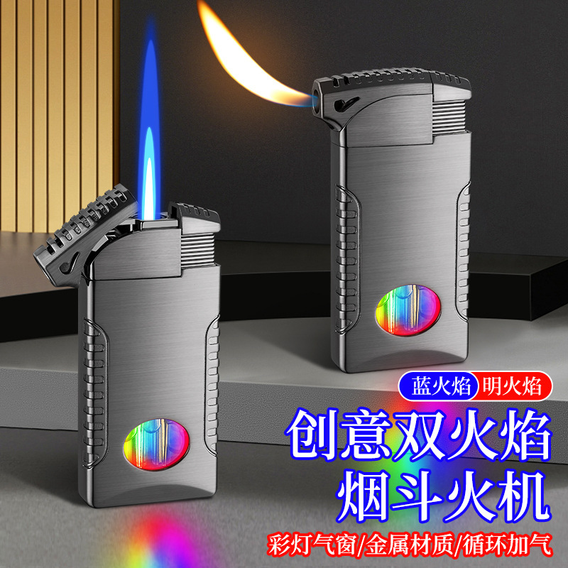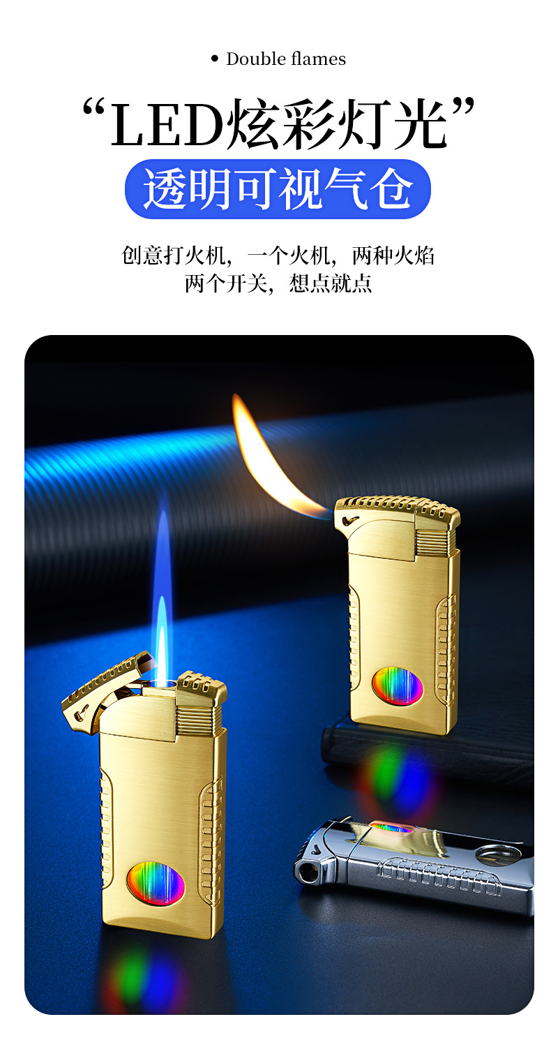新款双火充气打火机高颜值可视彩灯气窗网红男士防风打火机礼品