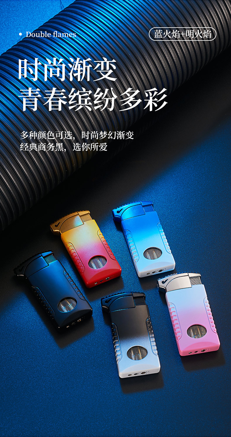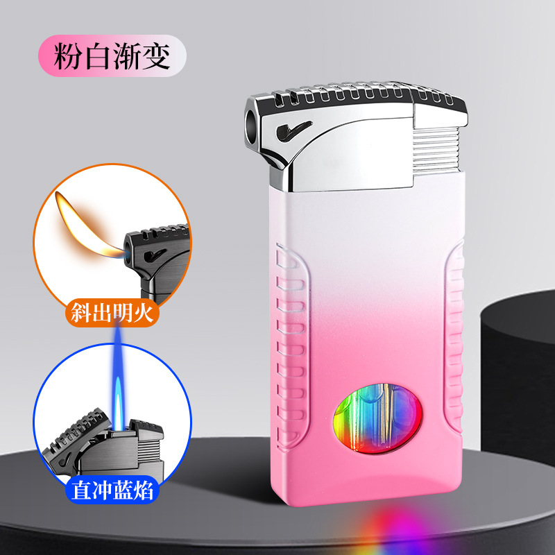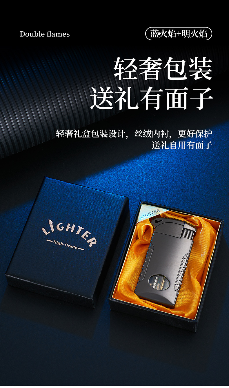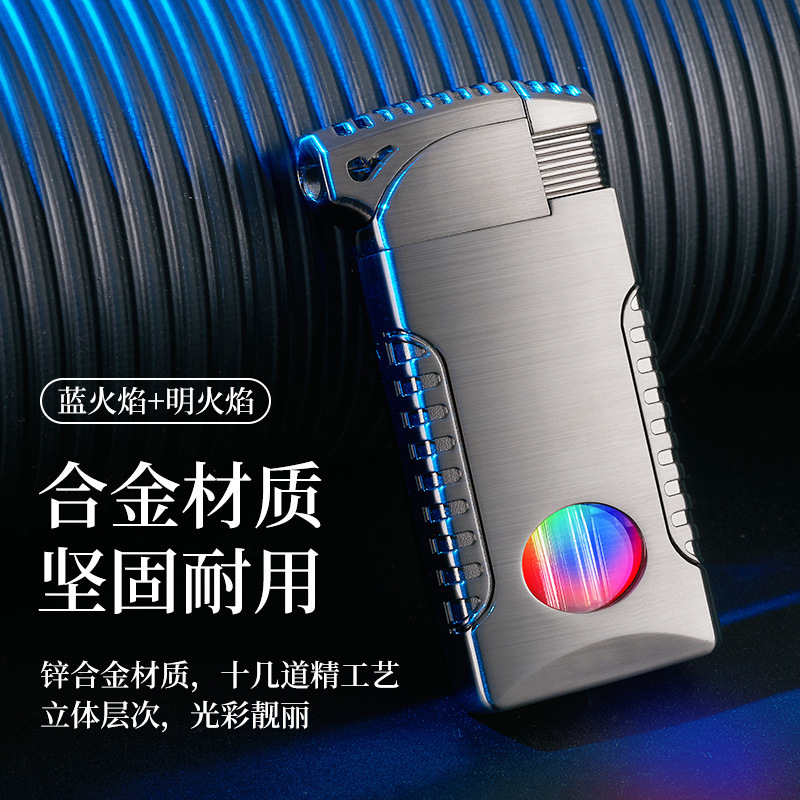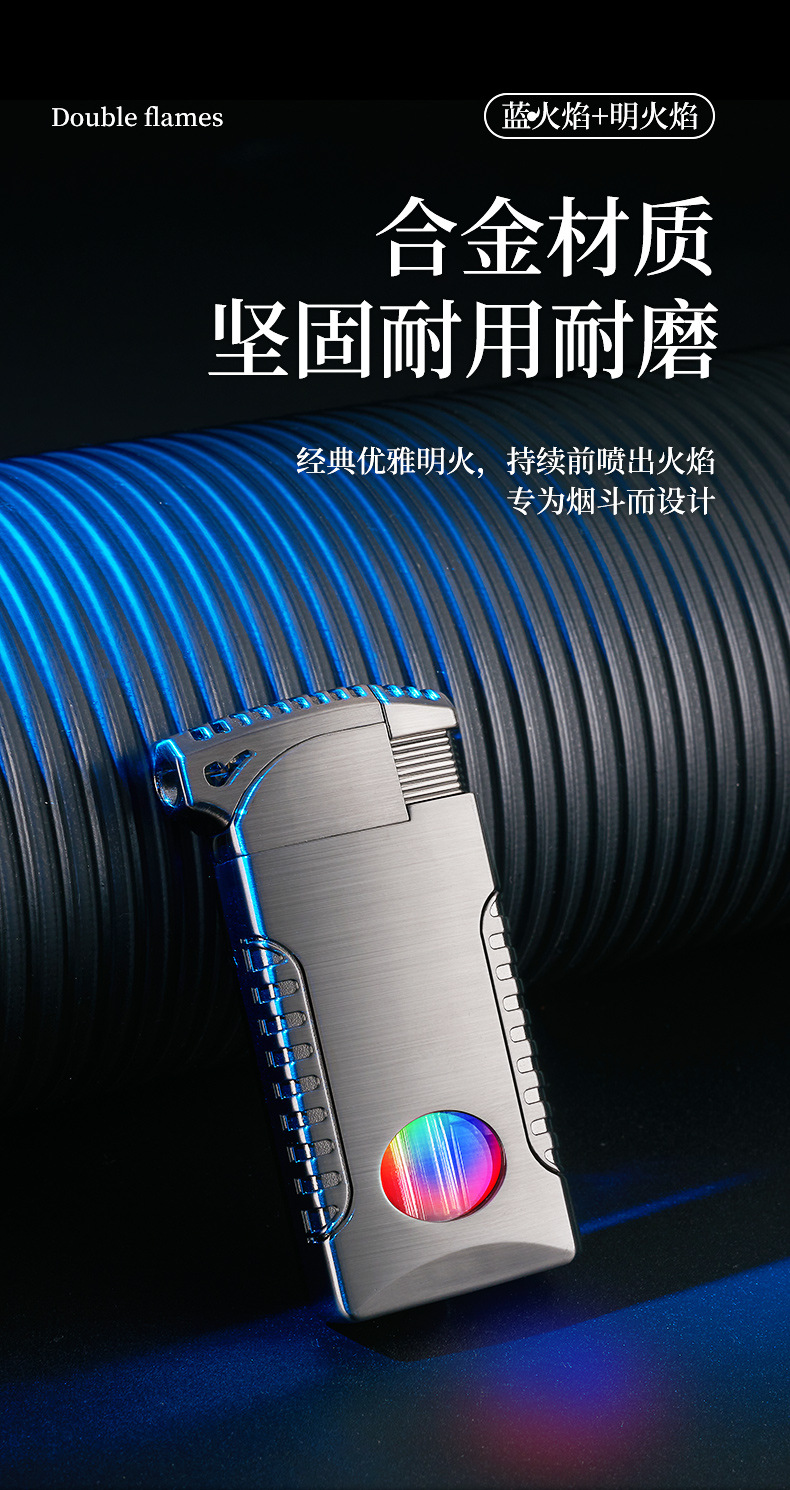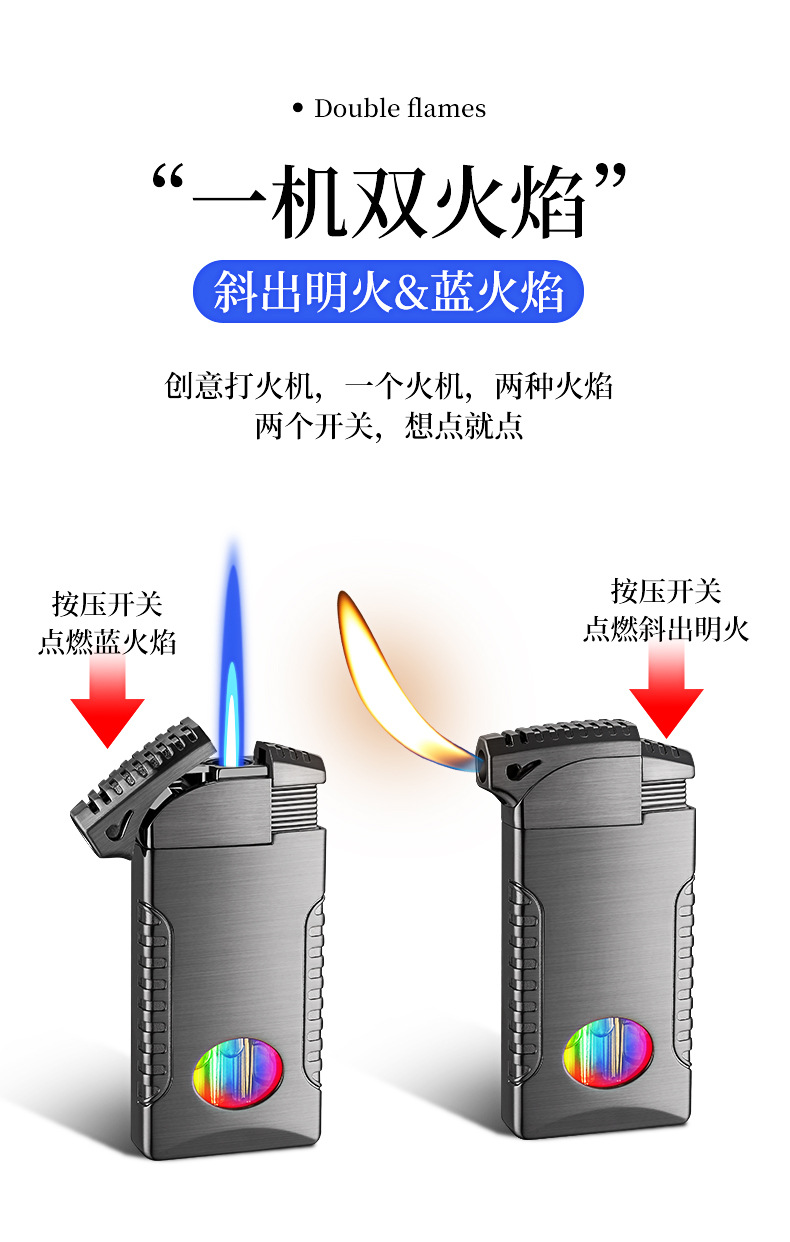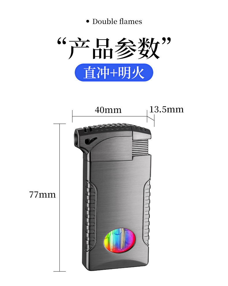 新款双火充气打火机高颜值可视彩灯气窗网红男士防风打火机礼品