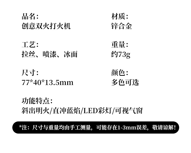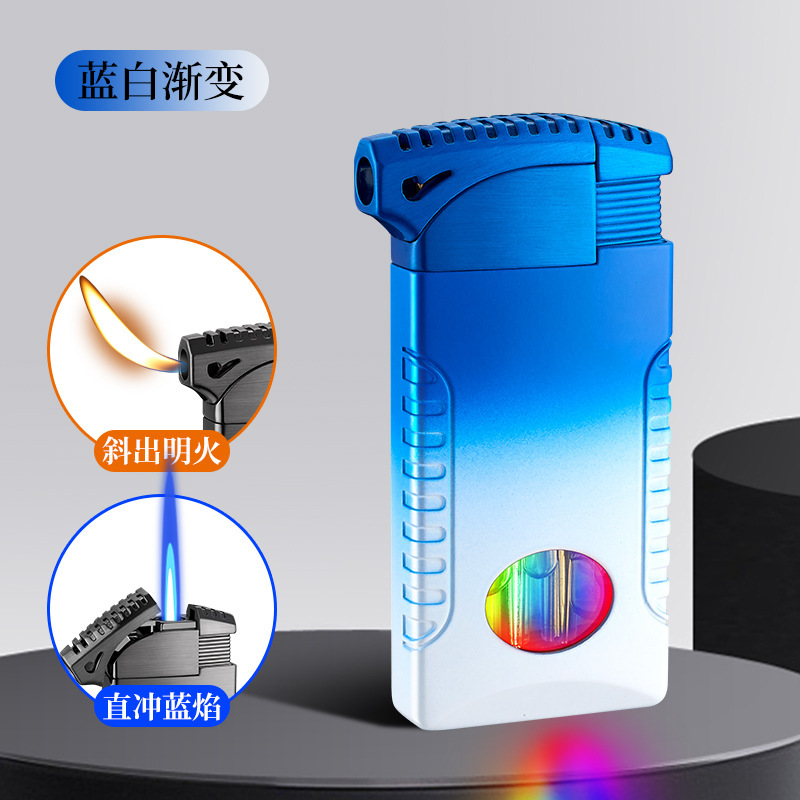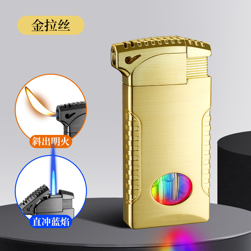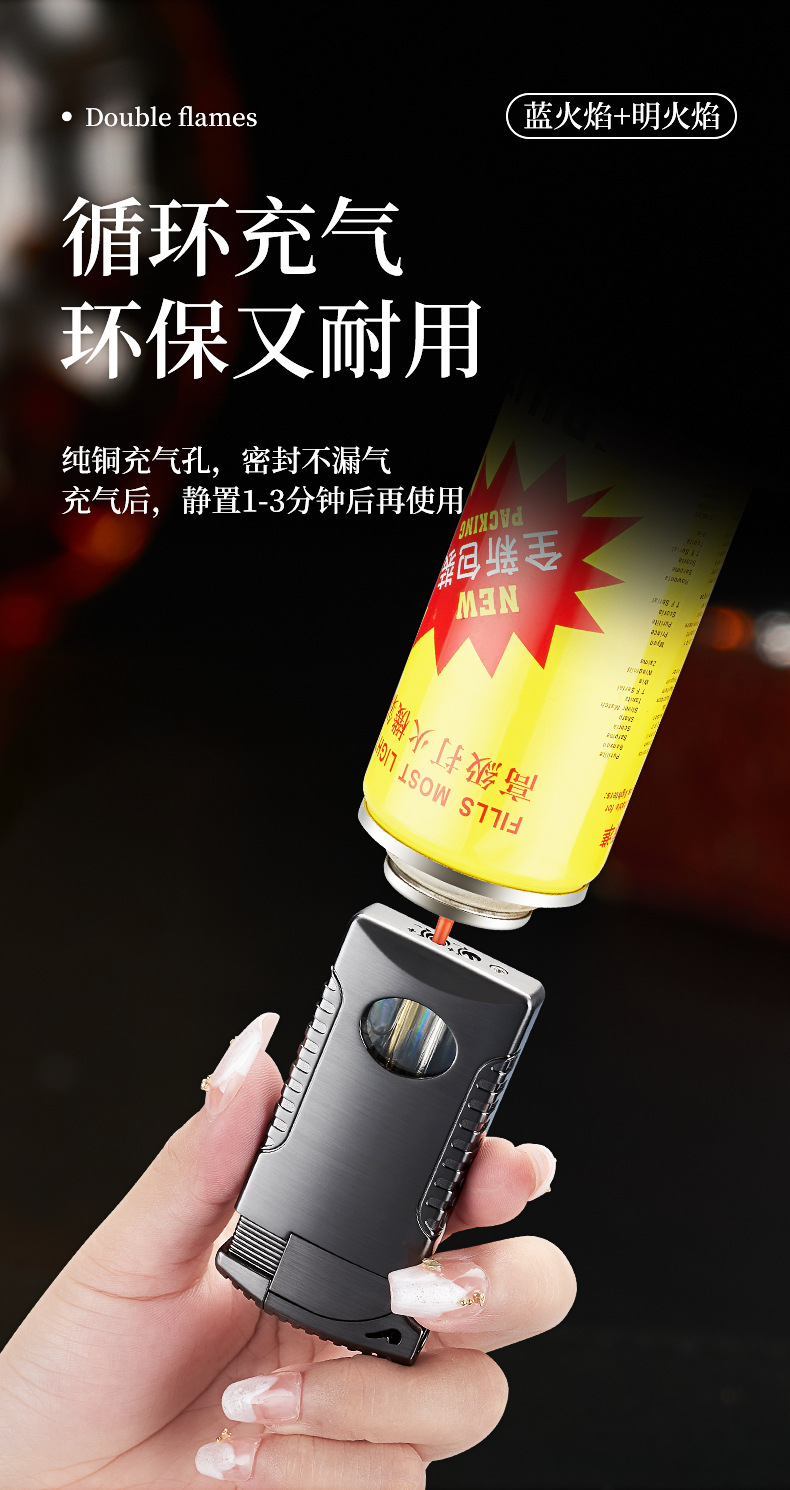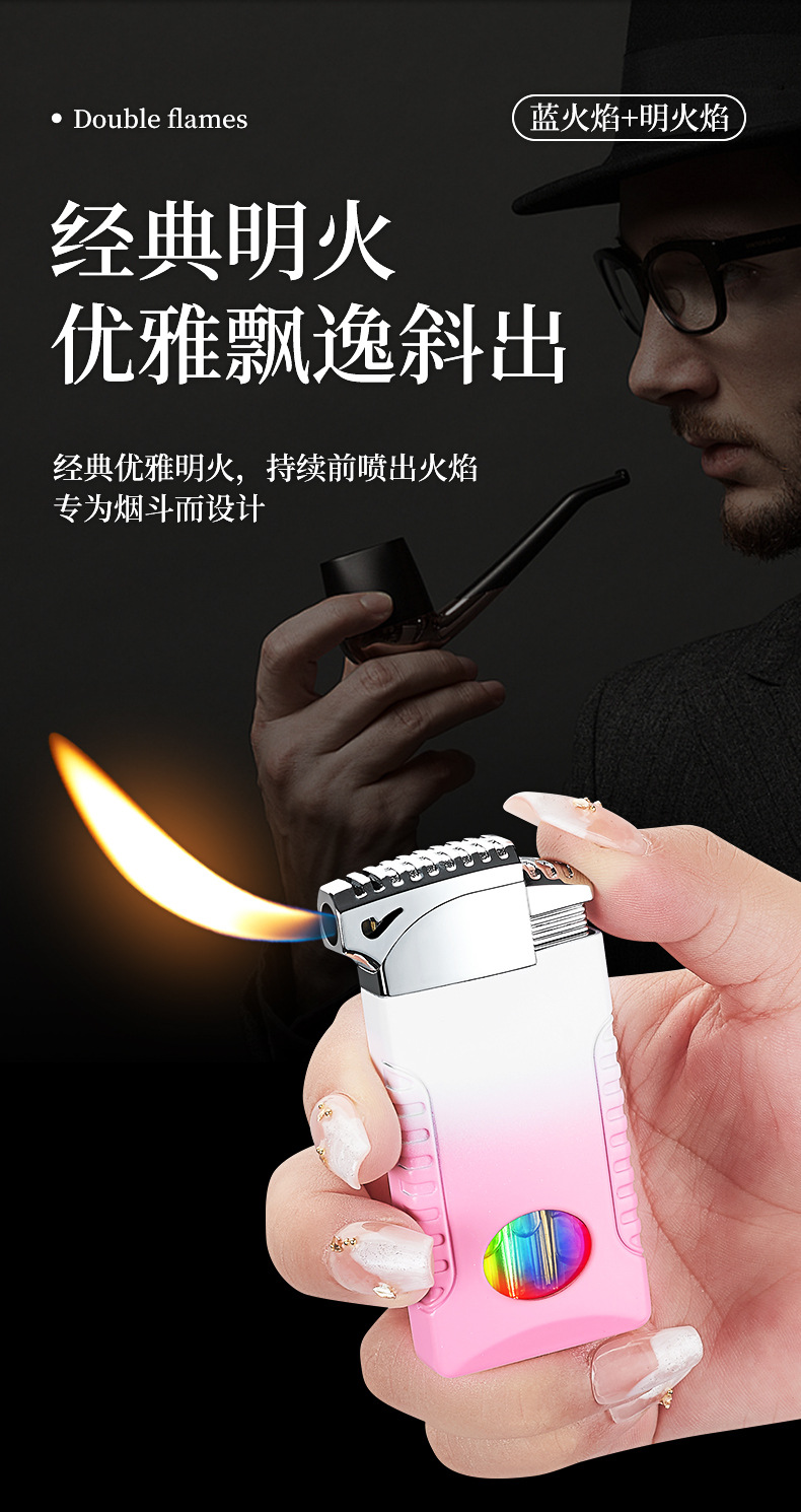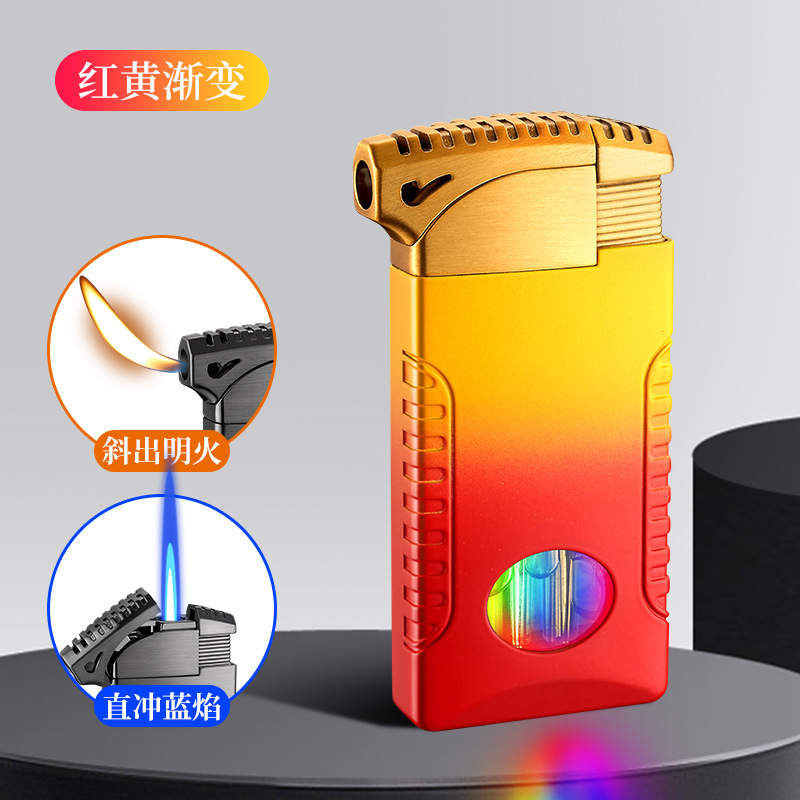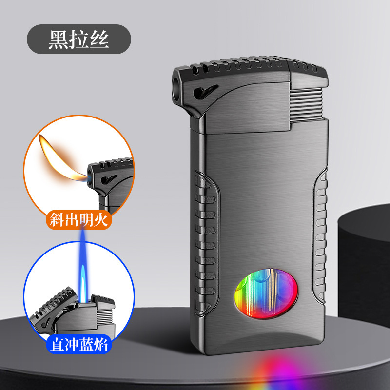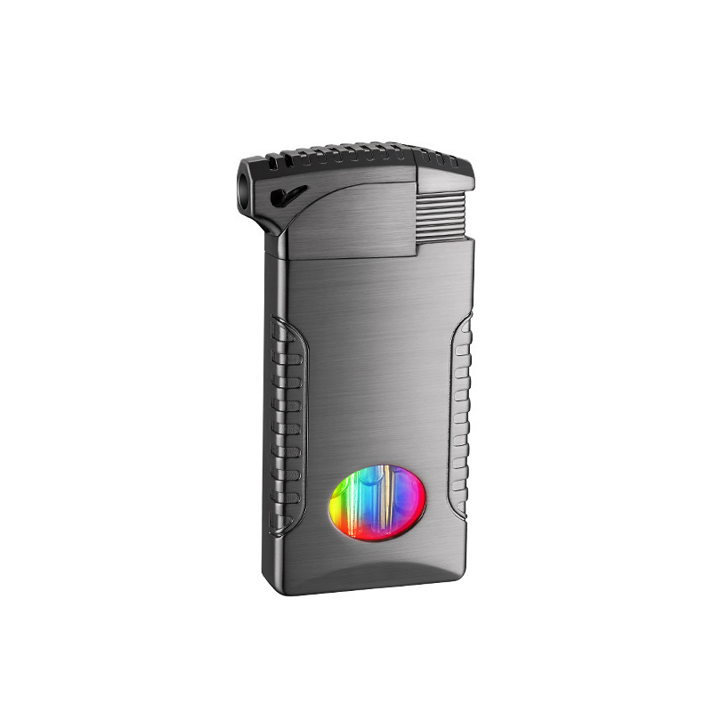 新款双火充气打火机高颜值可视彩灯气窗网红男士防风打火机礼品