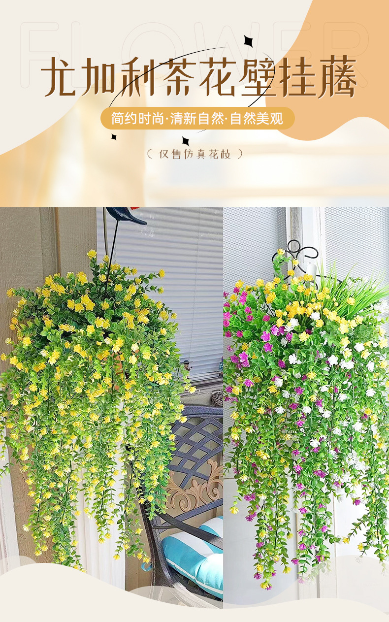亚马逊跨境仿真花尤加利茶花藤条金钱叶玫瑰壁挂婚庆园艺装饰家居