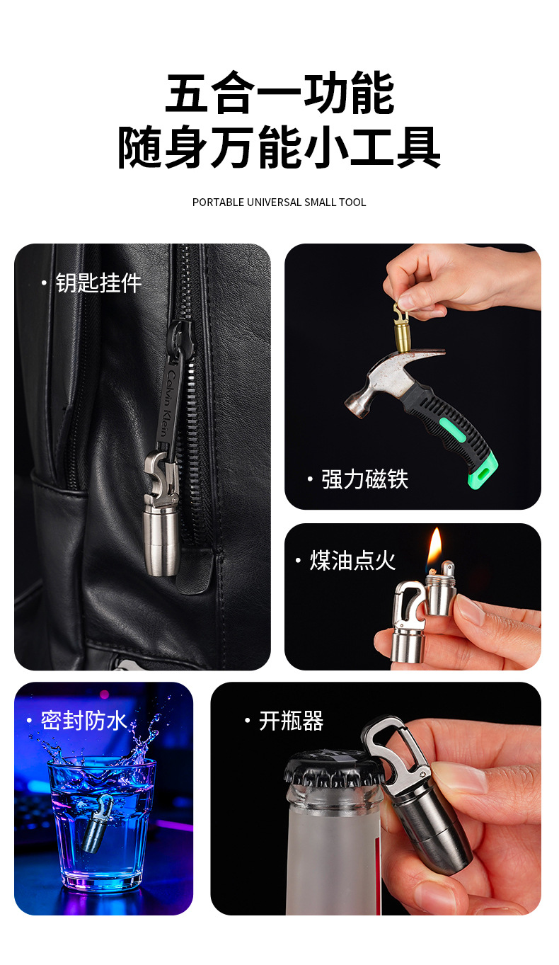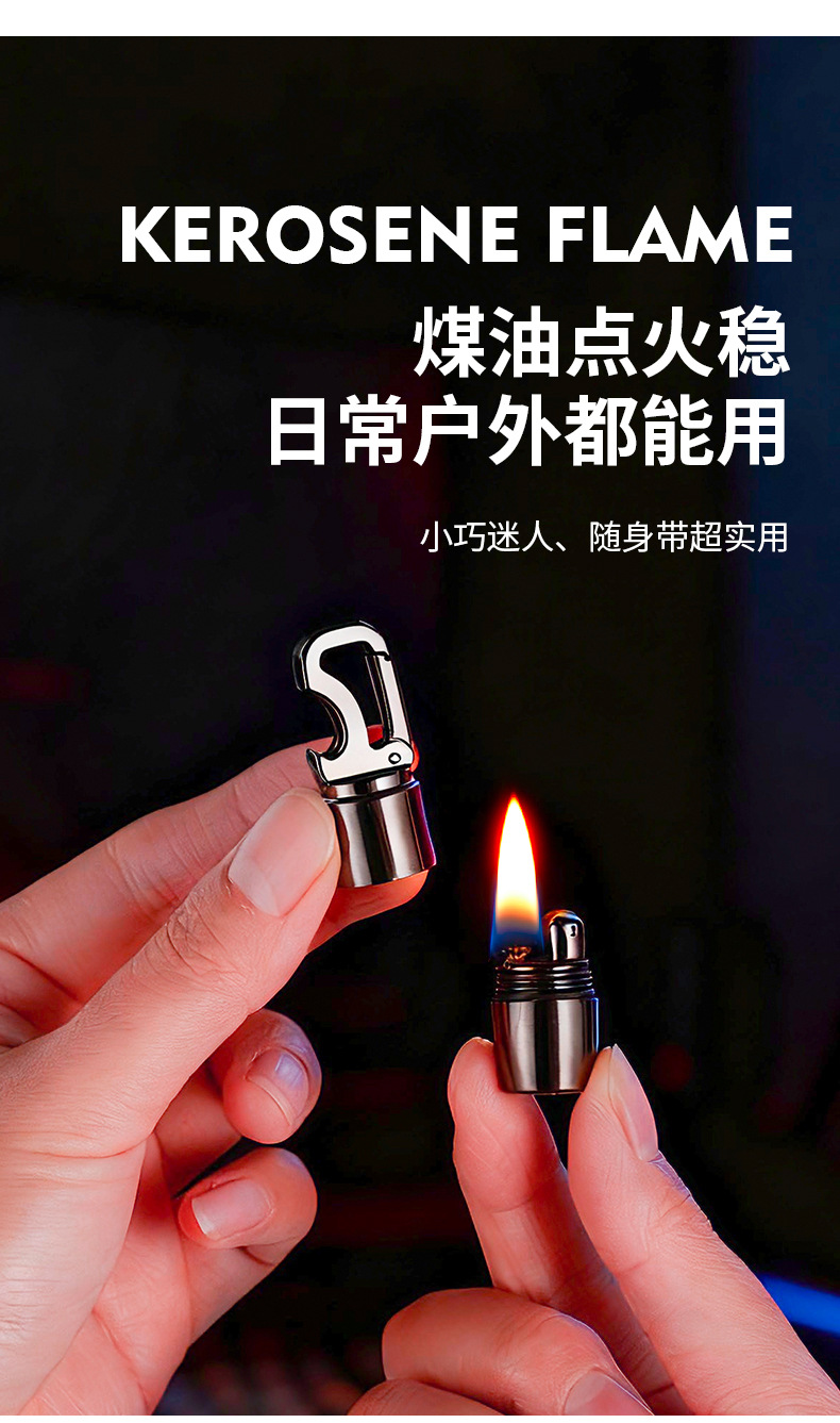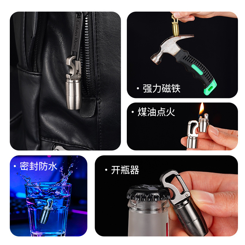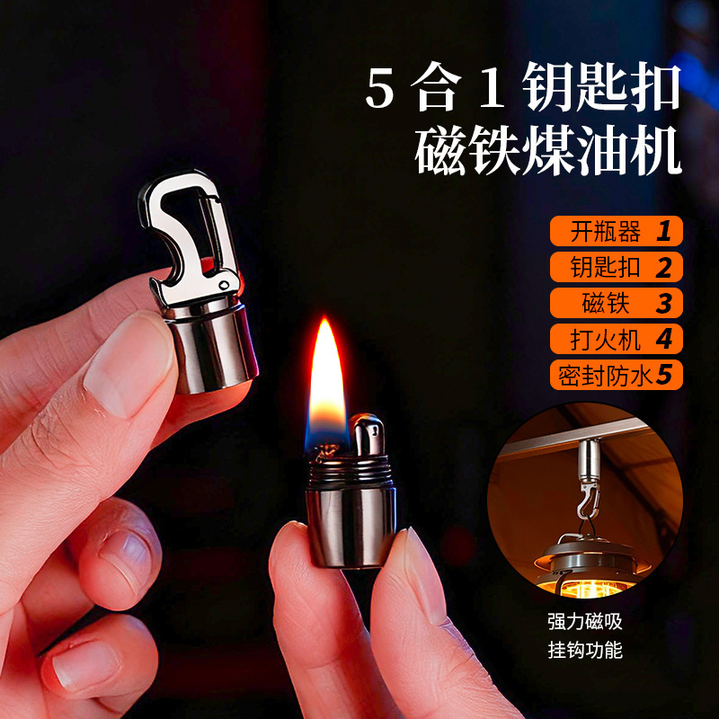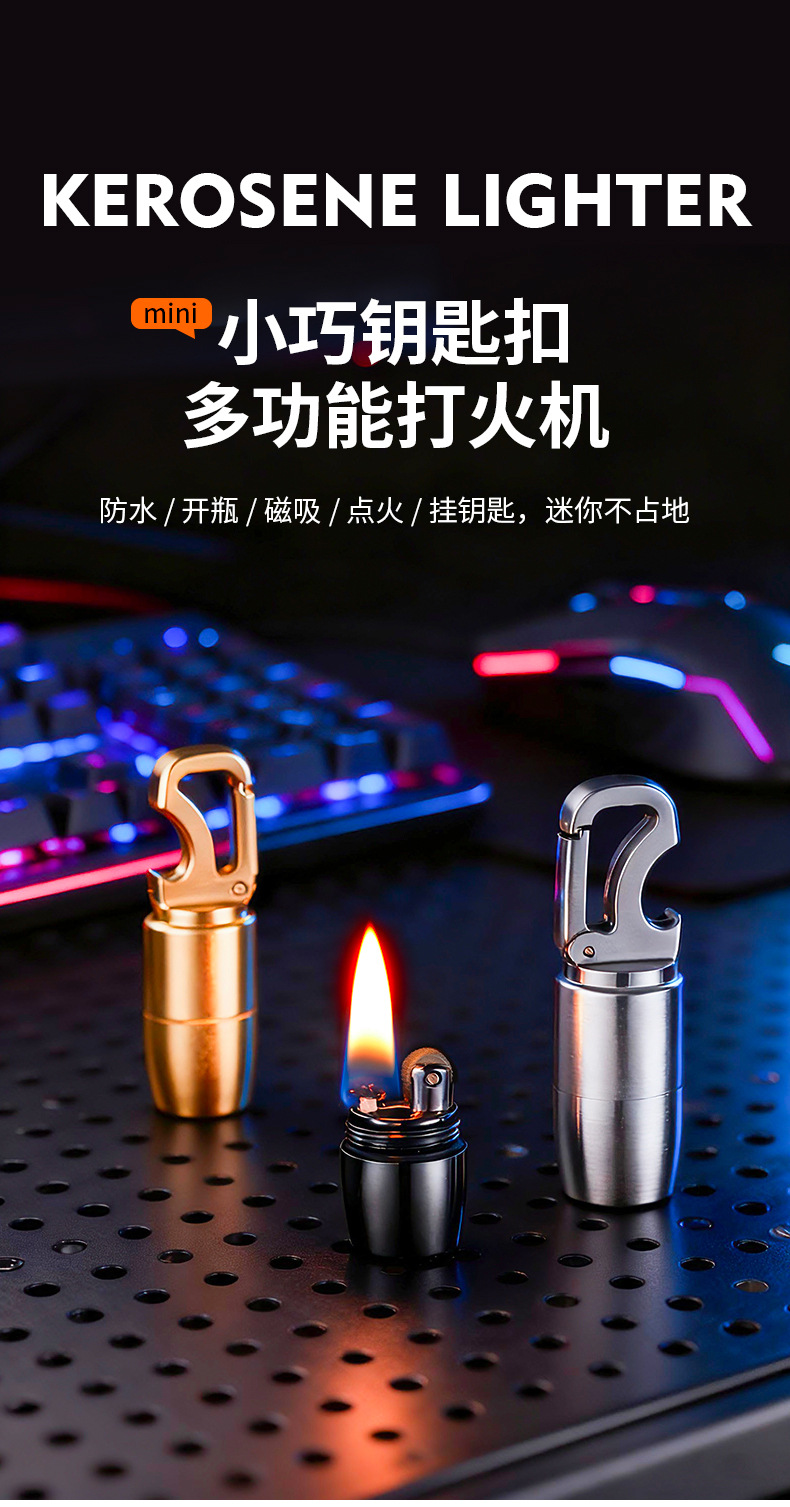 迷你钥匙扣煤油打火机磁吸带酒开多功能砂轮明火挂件打火机