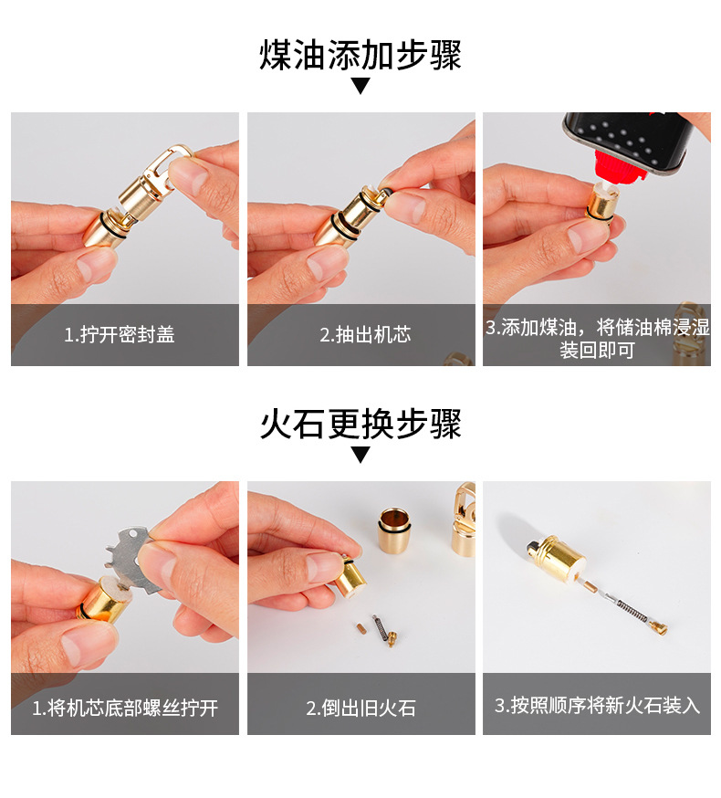 注意:新的煤油打火机不含油,必须自行加油使用。本店有售,在配件类煤油专栏。