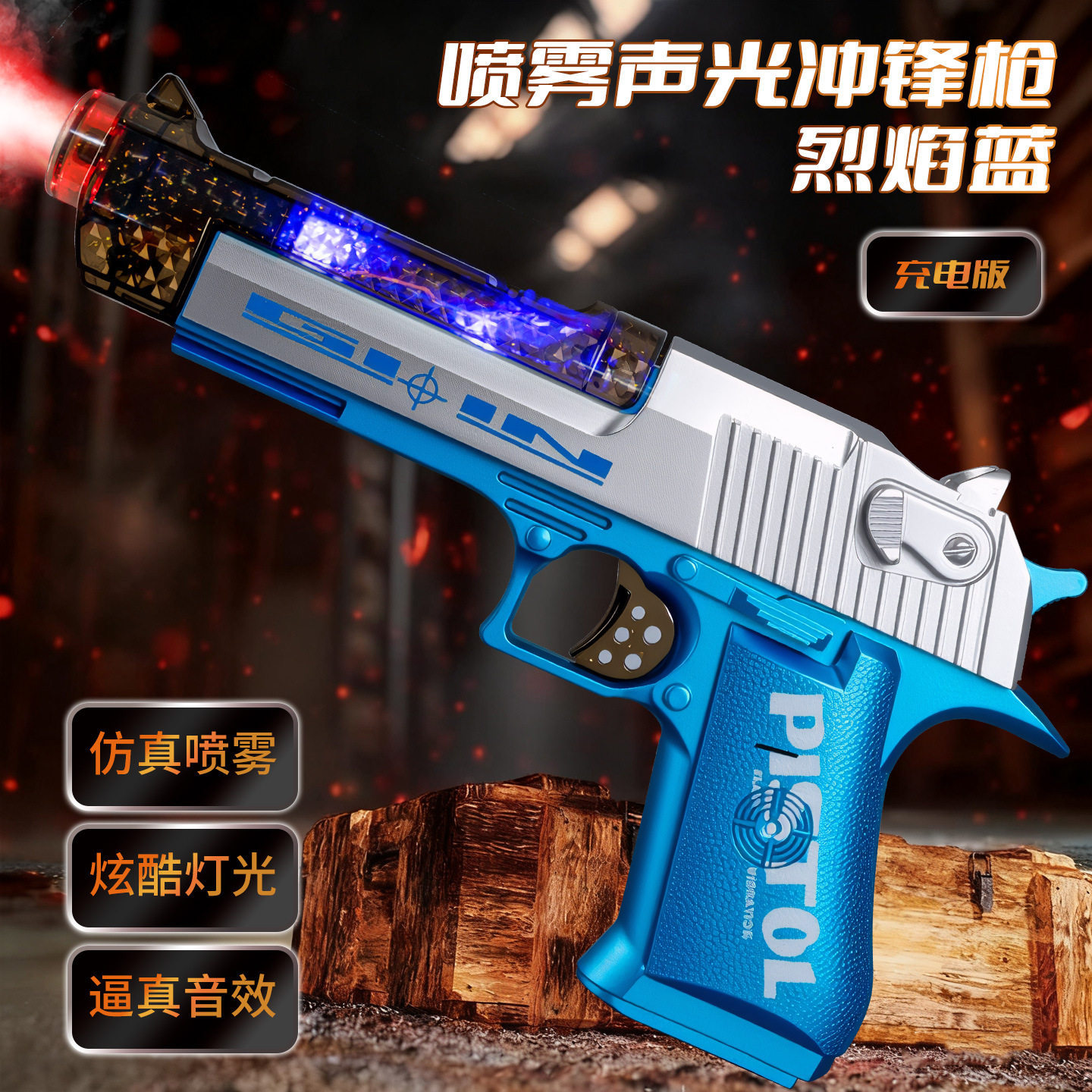 儿童喷雾音乐机关枪声光冲锋枪男孩枪电动玩具枪节日夜市摆摊批发