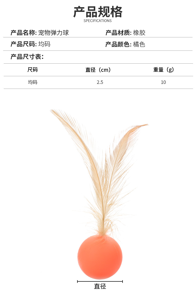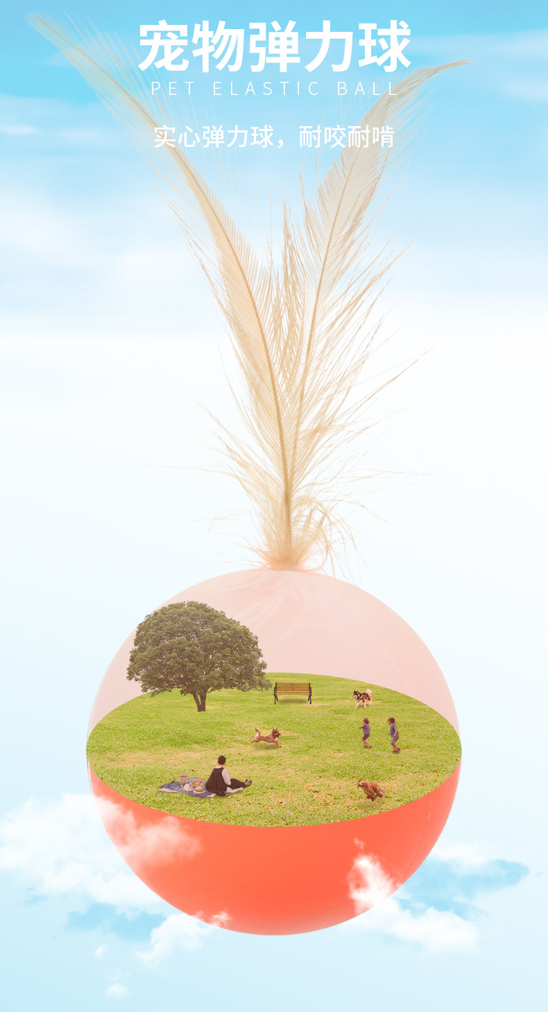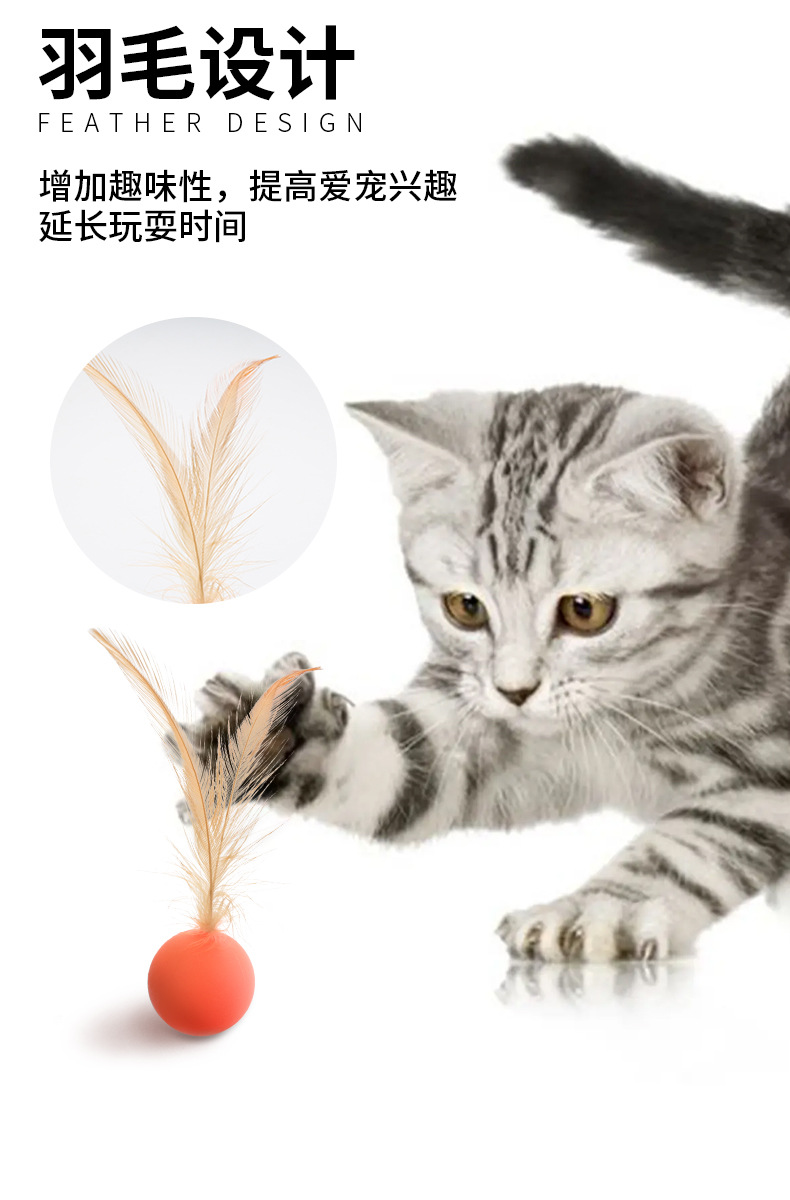 跨境新品宠物耐咬玩具 羽毛实心弹力小球 耐啃互动玩耍逗猫玩具球