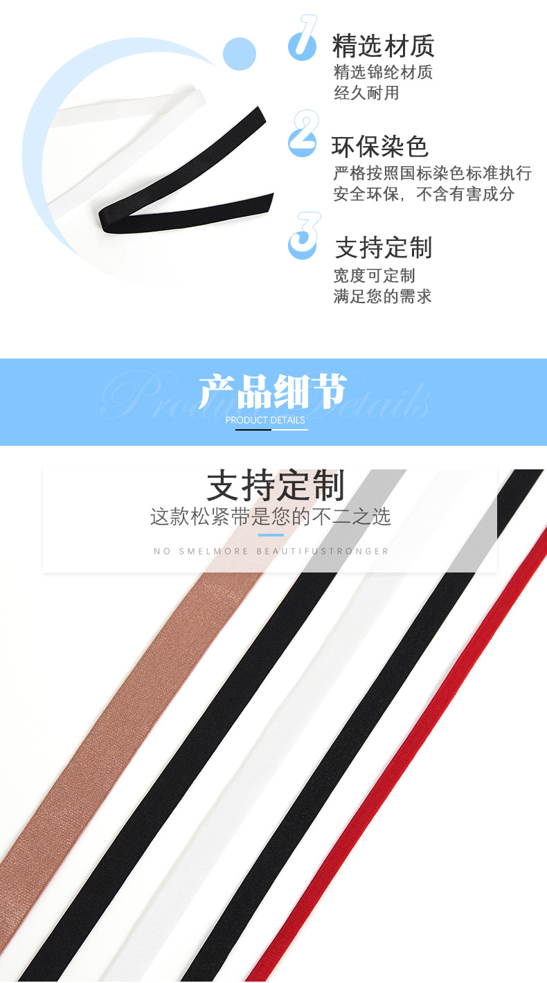 光面亮面多规格锦纶内衣肩带头饰娃衣美背内裤腰头服装辅料松紧带