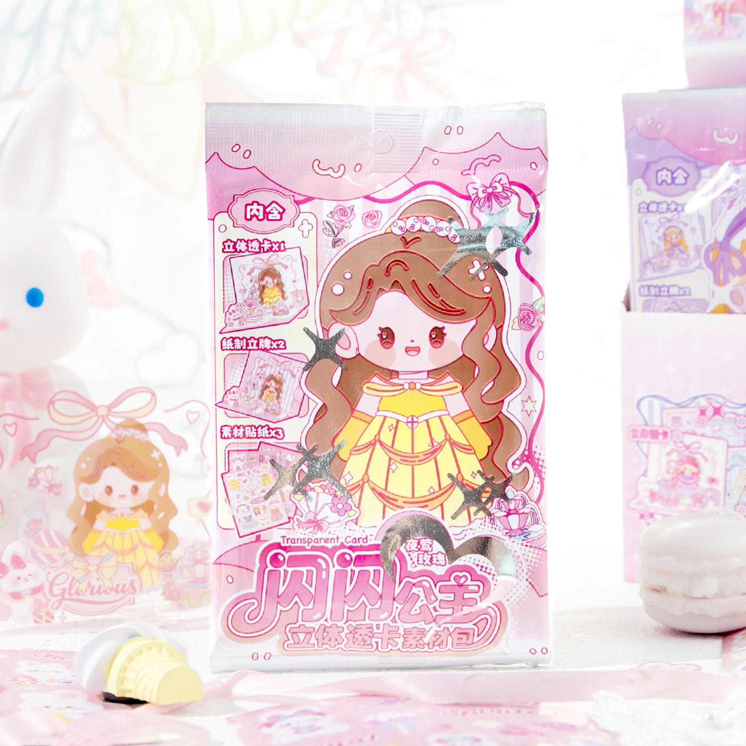闪闪公主立体透卡素材包少女心DIY手账贴含立体透卡纸卡立牌批发