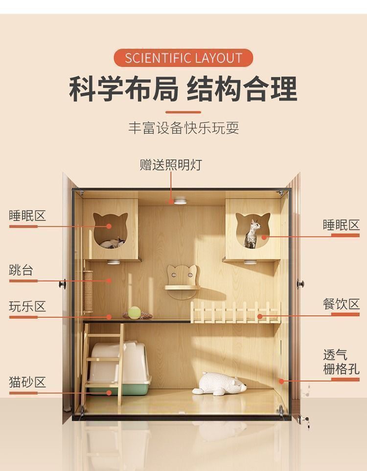 猫别墅猫笼家用室内豪华猫屋超大自由空间一体舍柜全景猫咪宠物柜